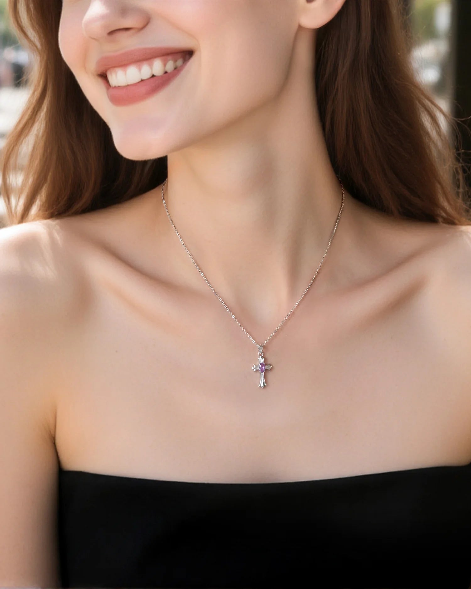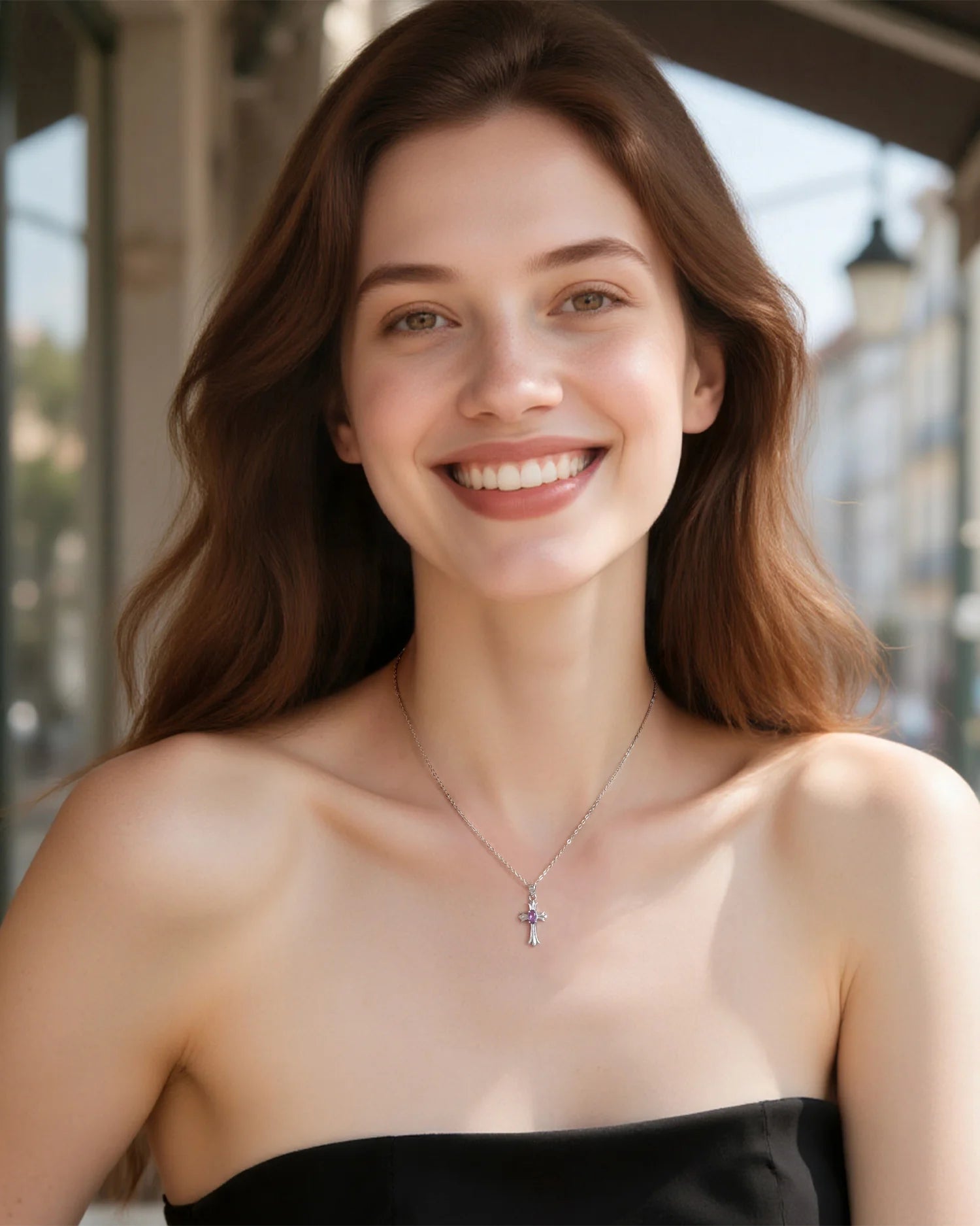 このペンダントネックレスは、天然アメジストをあしらったスターリングシルバーのクロスが特徴で、清らかさと献身を象徴しています。スピリチュアルな意味と時代を超越したスタイルが融合したエレガントなデザインは、普段使いにも、大切な贈り物にも最適です。どこへ行っても、穏やかさと集中力を保つためのさりげないメッセージです。