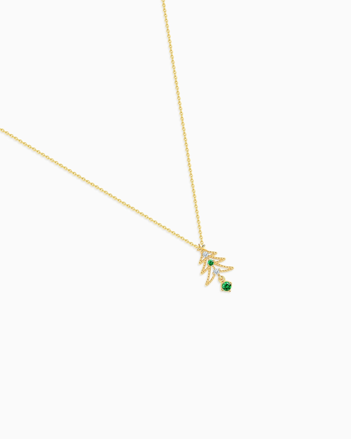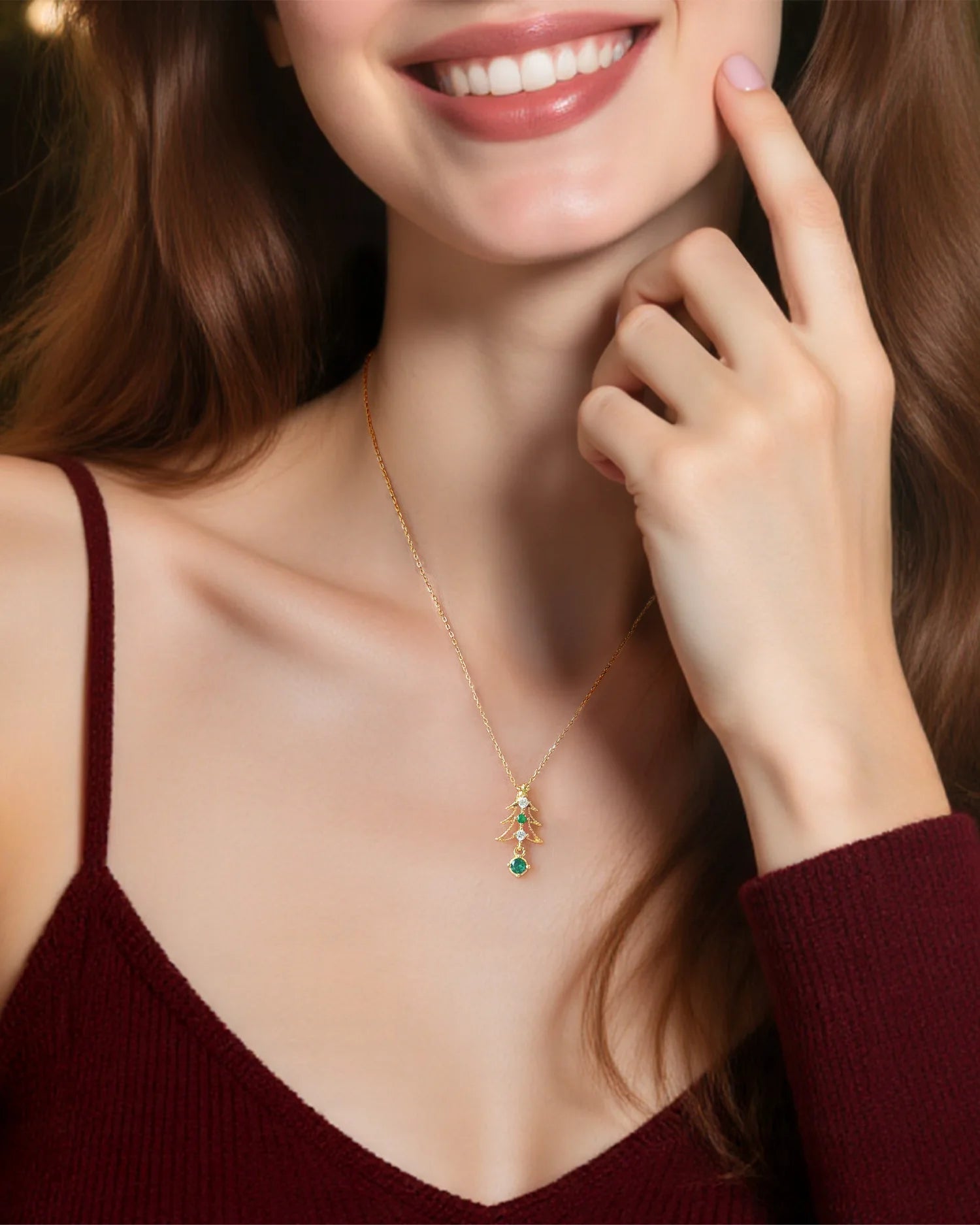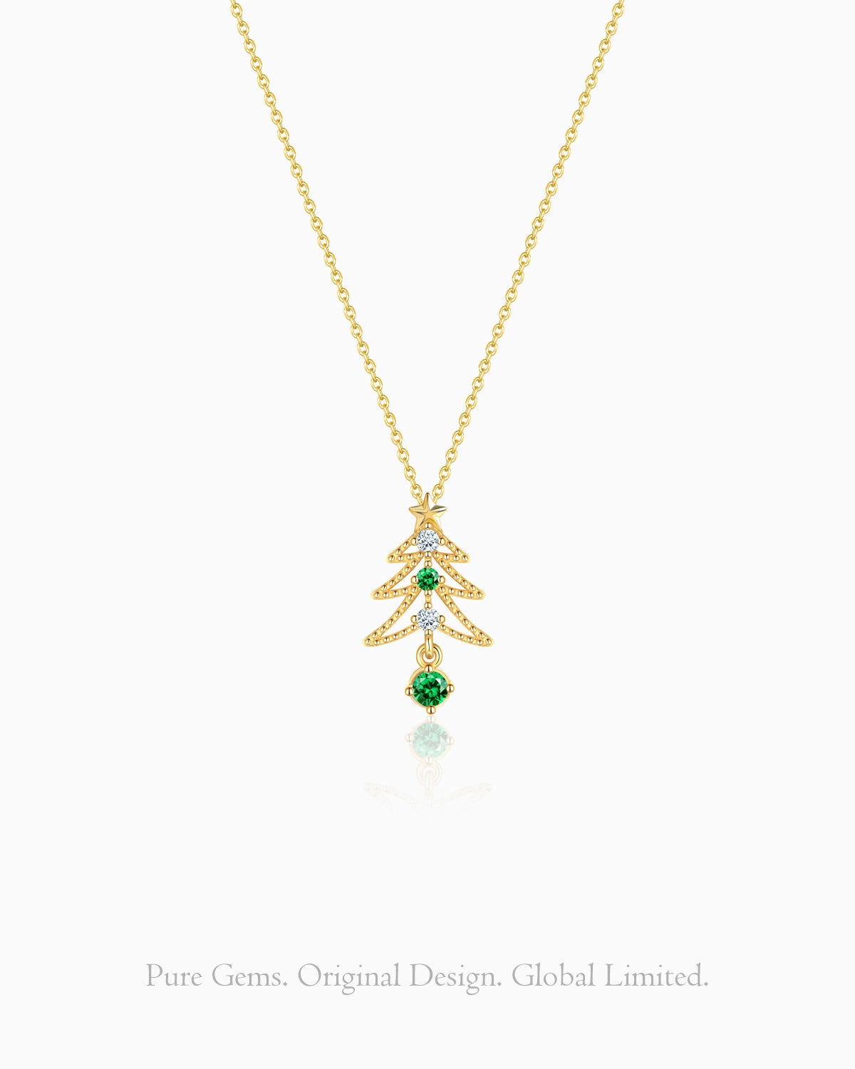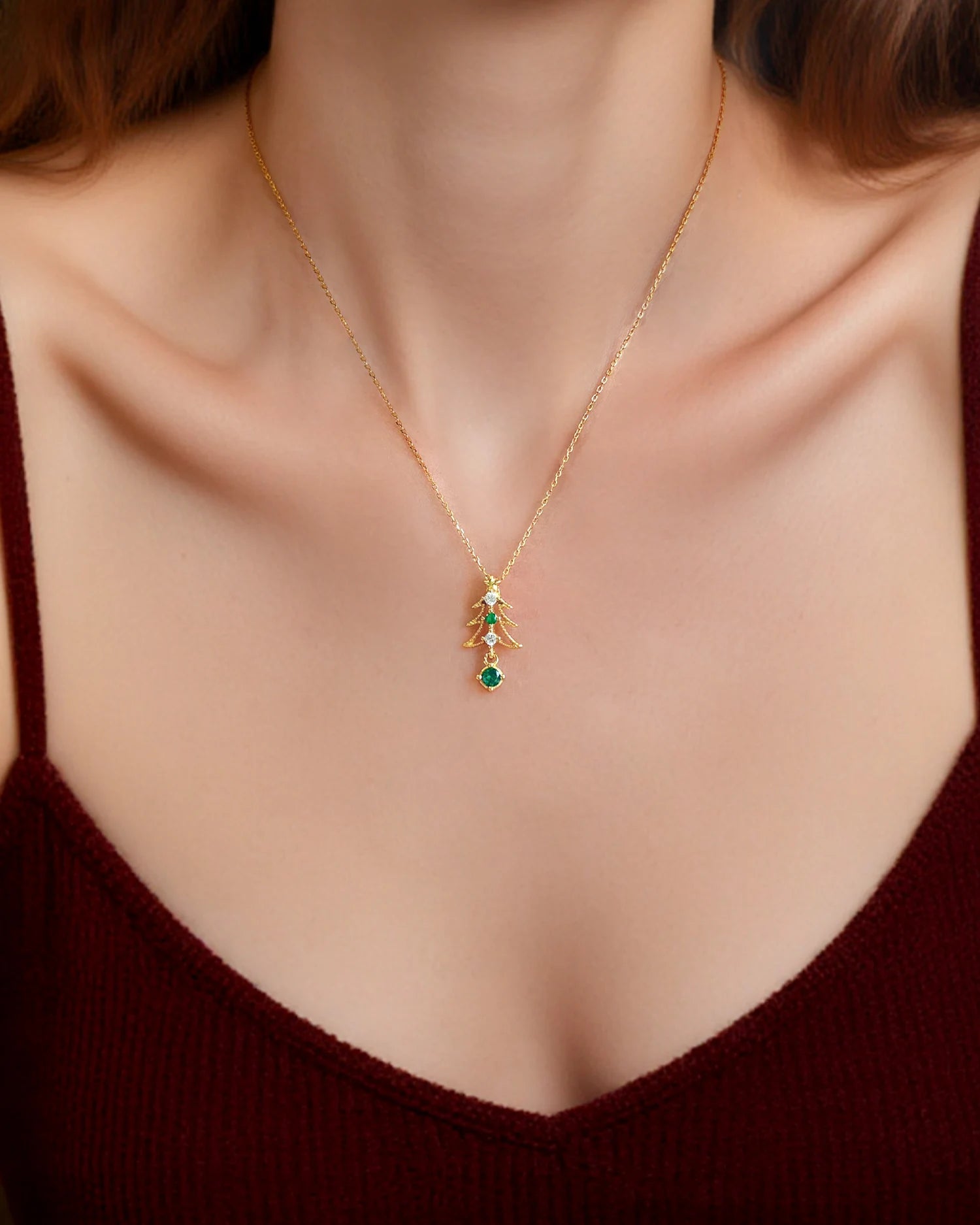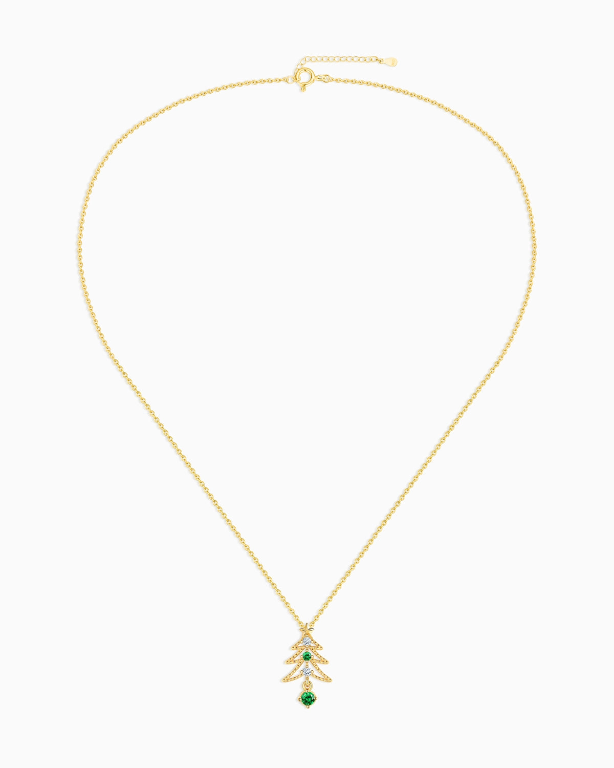 クリスマスツリーのペンダントネックレスで、華やかなホリデーシーズンをお祝いしましょう。14Kゴールドメッキのスターリングシルバーに、中央のブルージルコンのアクセントと小さな装飾ストーンがあしらわれ、ホリデーシーズンの新たな喜びを想起させます。重ねづけにも、単体でもお使いいただけます。