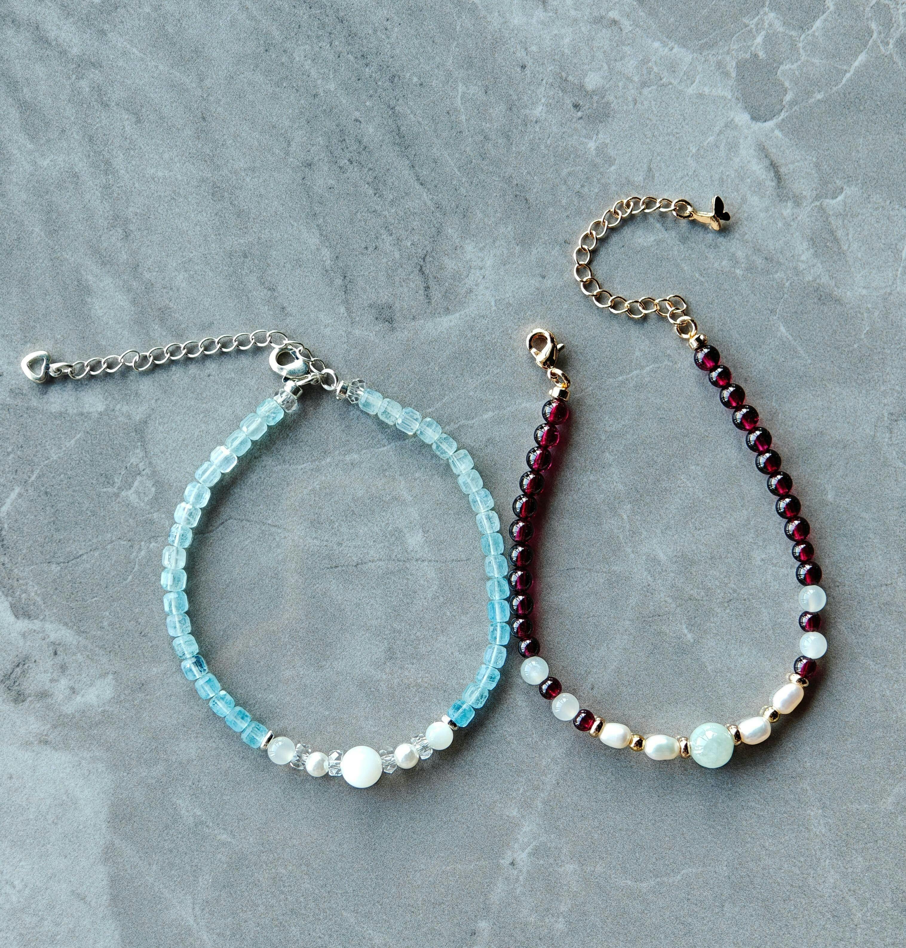 The garnet and jade feel incredibly stabilizing. I feel more centered and calm when I wear this, like a wearable meditation.
