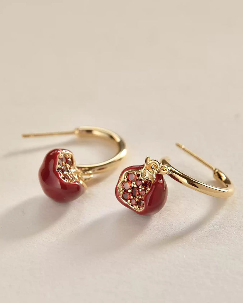 ガーネットは勇気と活力の石であり、情熱と内なる強さを象徴します。ザクロの豊かな美しさにインスパイアされたこのイヤリングは、豊かさと女性的なパワーを称えています。身に着けるたびに、内なる炎と自信を燃え上がらせましょう。