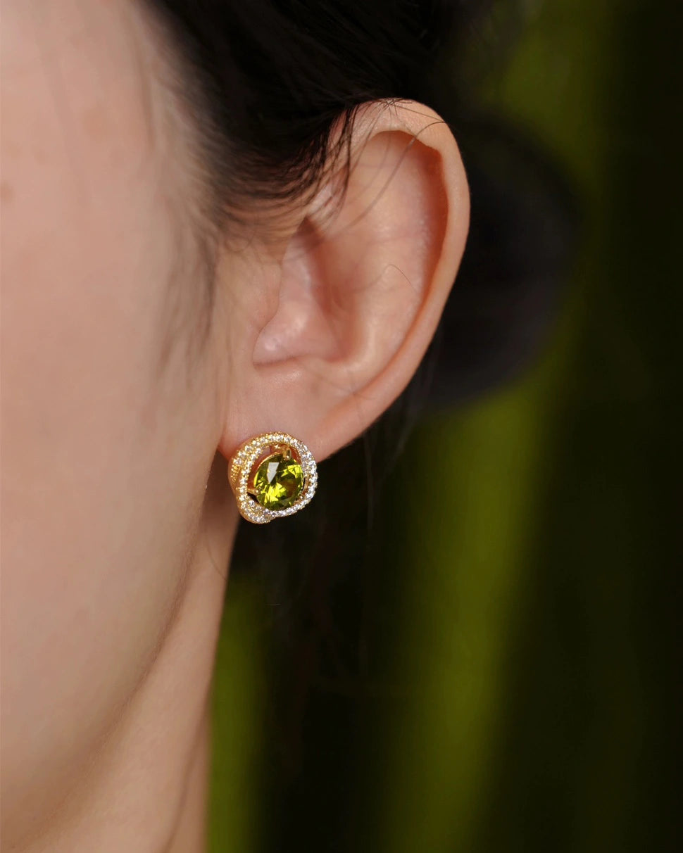 ペリドットは、再生と活力をもたらし、前向きでエネルギッシュな状態を保つのに役立ちます。絵画のような優雅さと繊細な花のアクセントが融合したこのイヤリングは、動きのたびに自然の美しさと創造的な表現を想起させます。