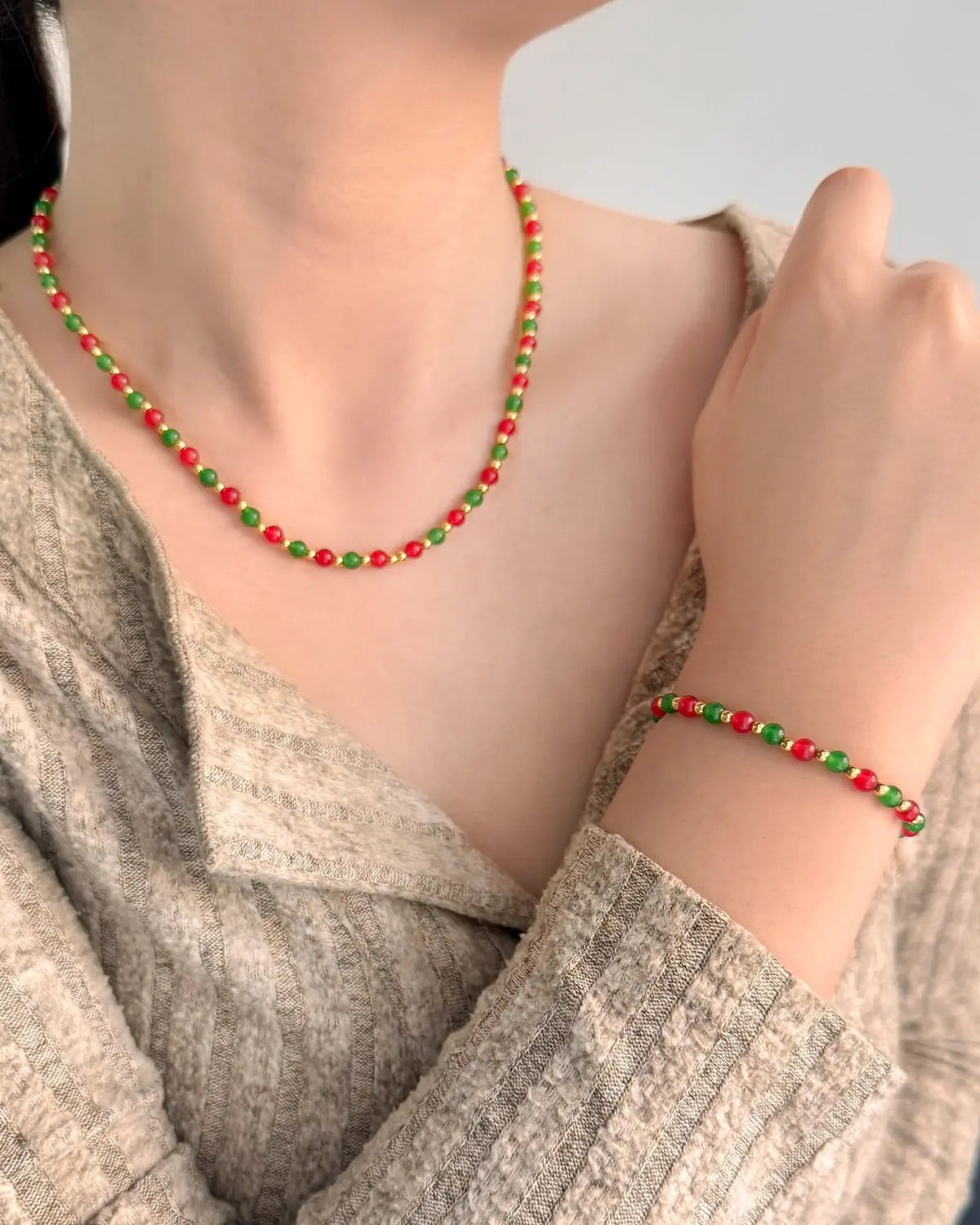 砂漠に咲くサボテンにインスピレーションを得たこのネックレスは、4mmのグリーンアゲートとレッドアゲートのビーズを交互にあしらいました。グリーンアゲートの慈愛に満ちた成長と愛情、そしてレッドアゲートの自信と活力を兼ね備えています。5月の誕生石は、毎日の装いにバランスと勇気、そして大胆なエネルギーをもたらします。