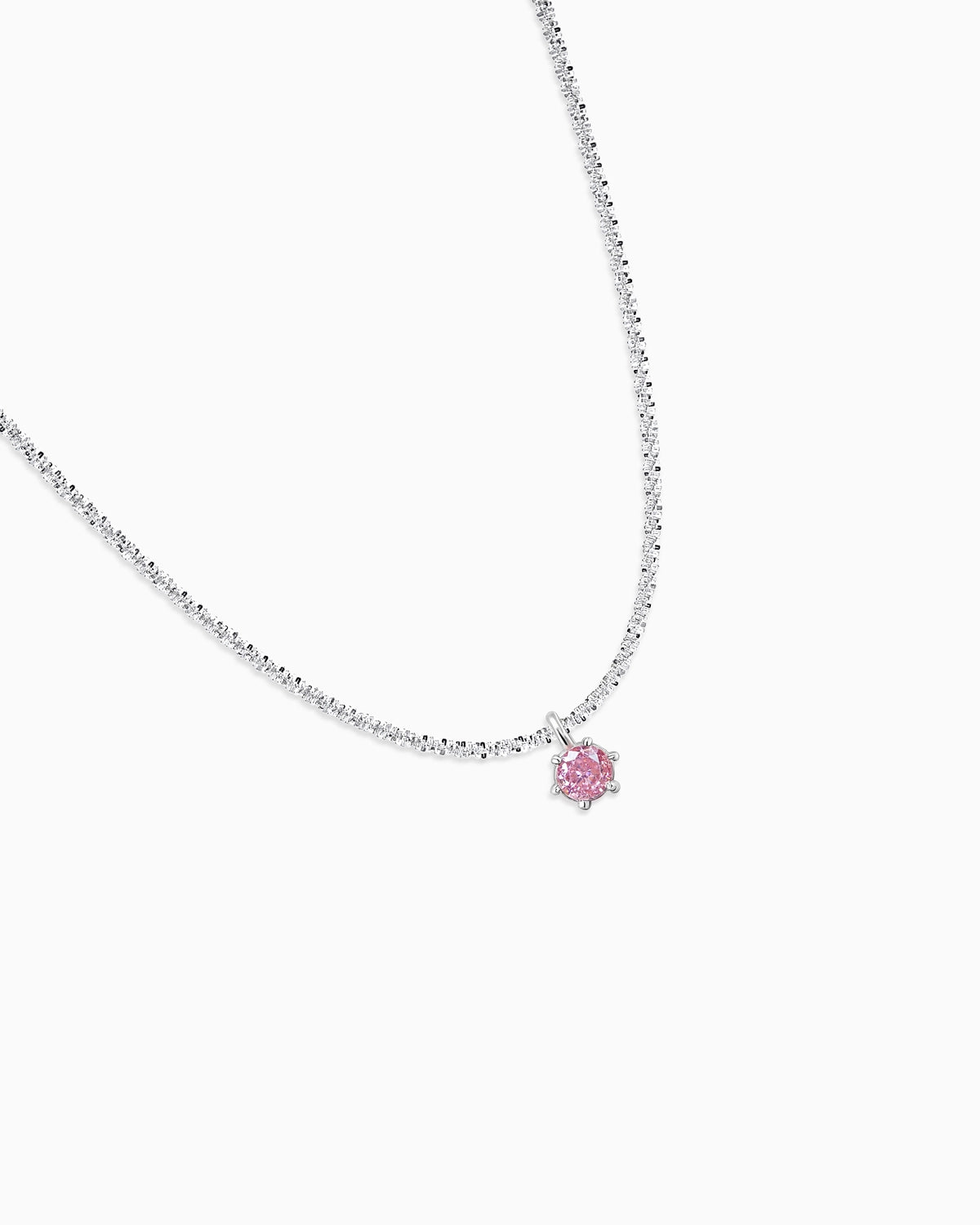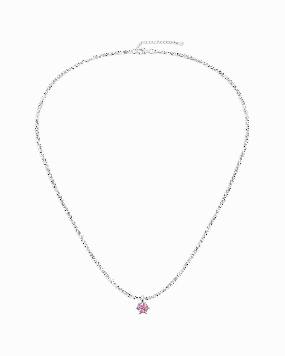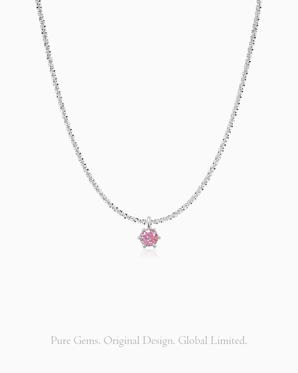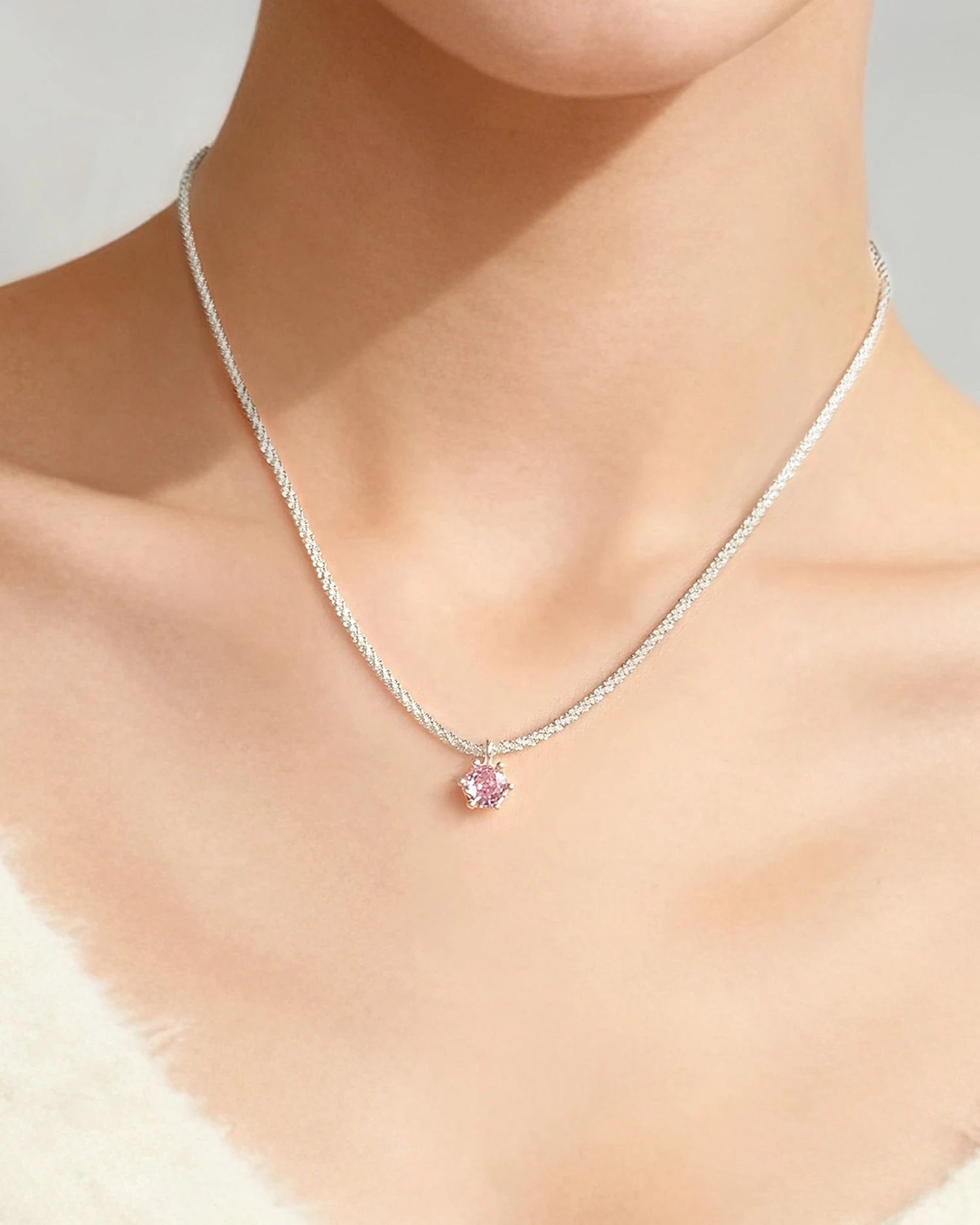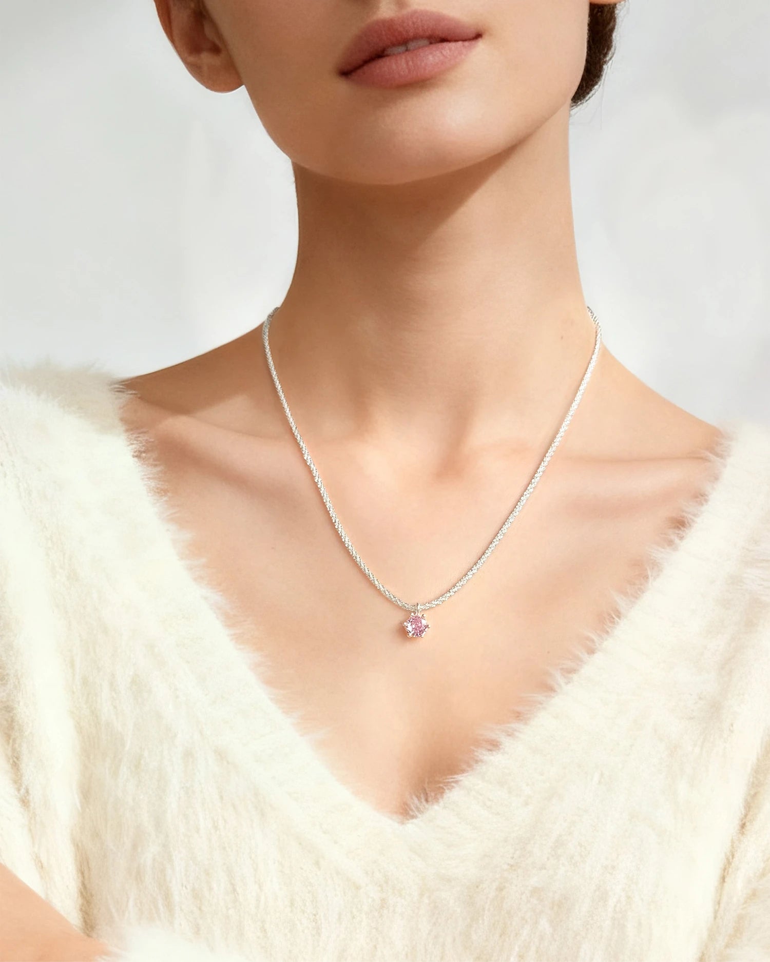 柔らかな輝きを放つファセットカットのピンククリスタルペンダント。きらめく「スターライト」スターリングシルバーチェーンが、動きに合わせてきらめきます。愛と自信の優雅なシンボルは、光と女性らしさを愛する方のためにデザインされています。