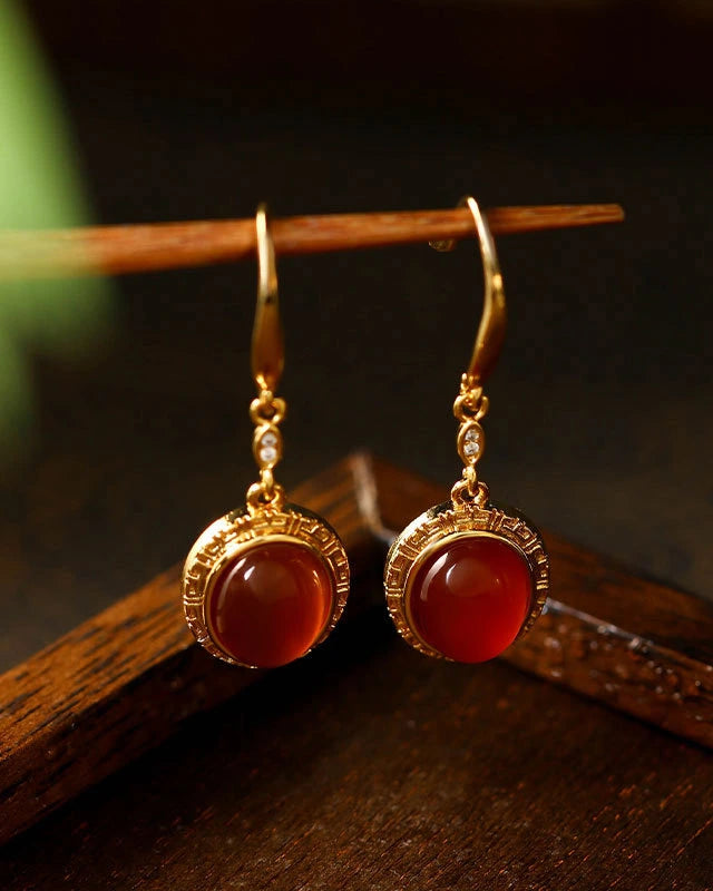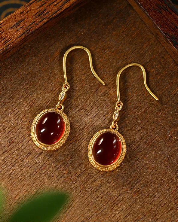 時代を超えた宮殿の優雅さにインスパイアされたこのイヤリングは、精緻なディテールで縁取られた光沢のあるオーバルレッドアゲートが特徴です。洗練されたシルエットと深紅の輝きは、モダンなタッチでクラシックな壮麗さを醸し出します。