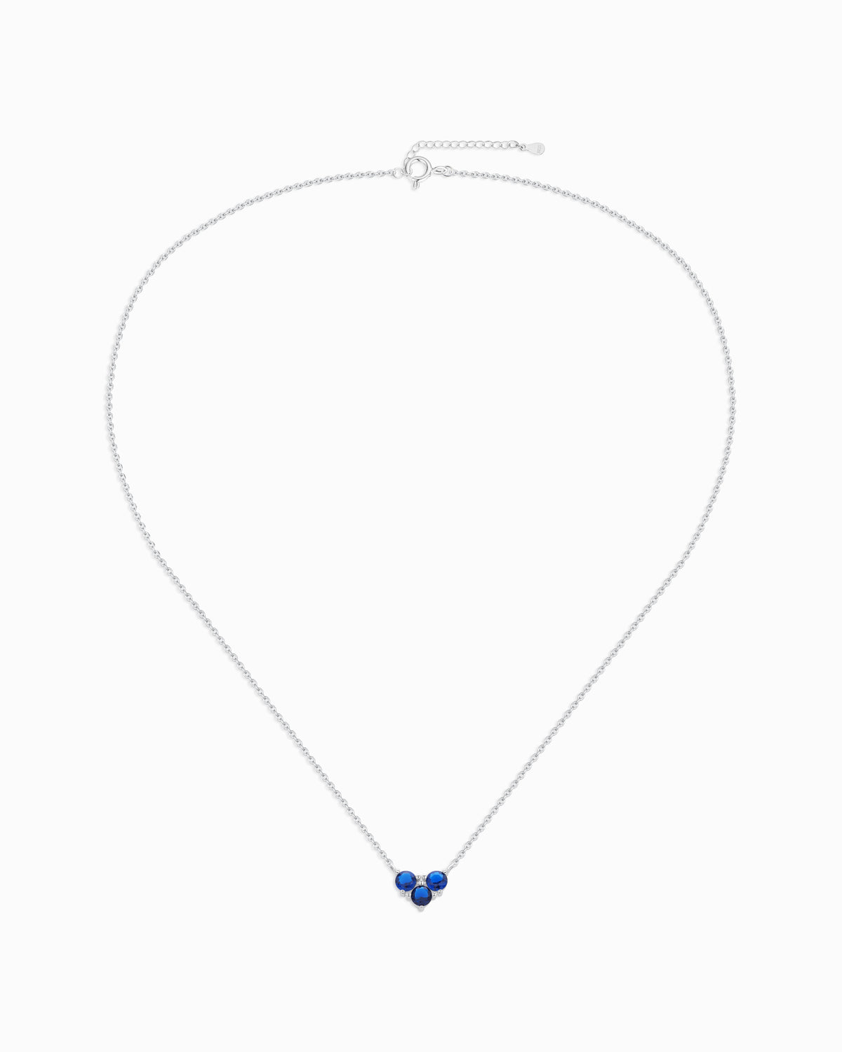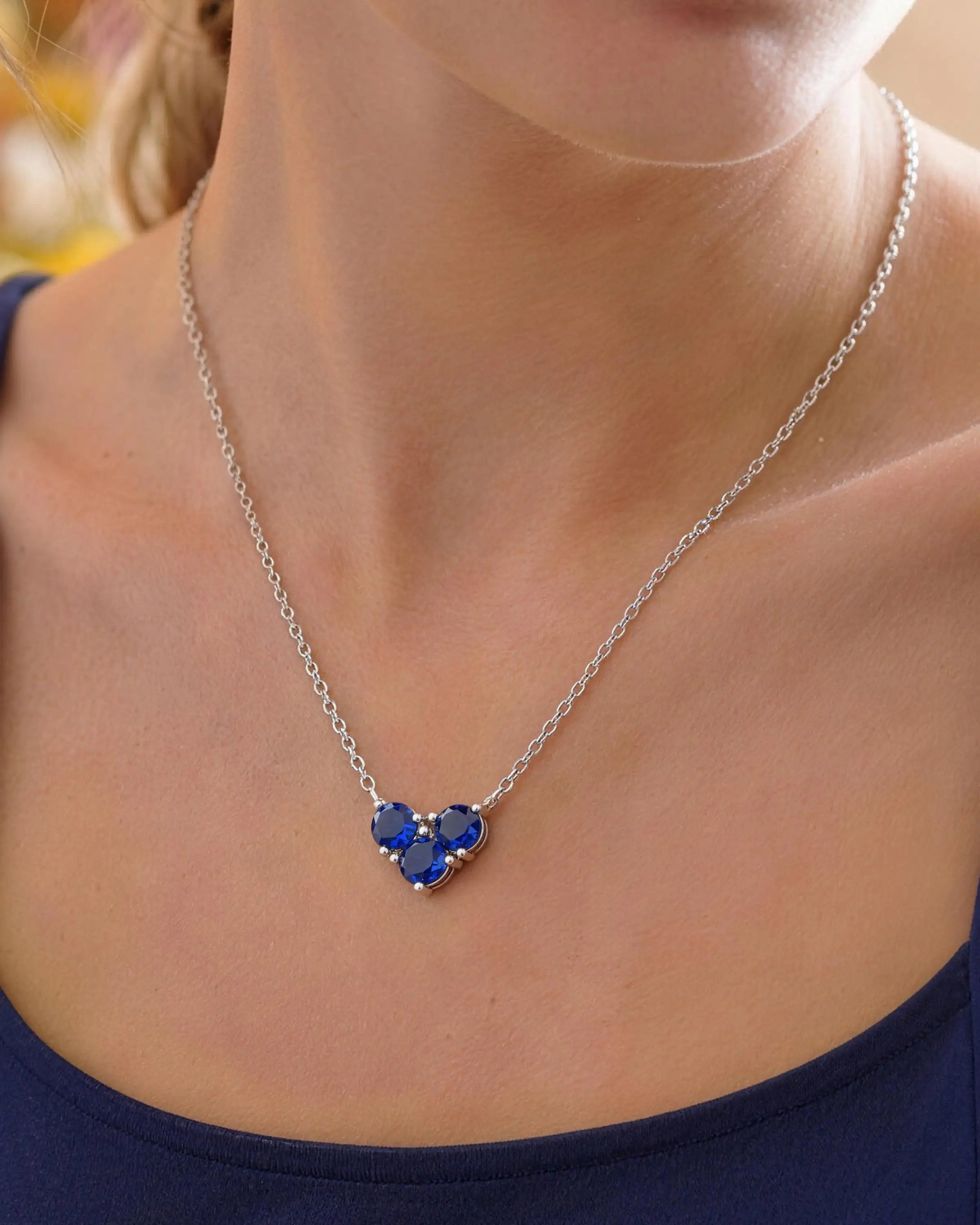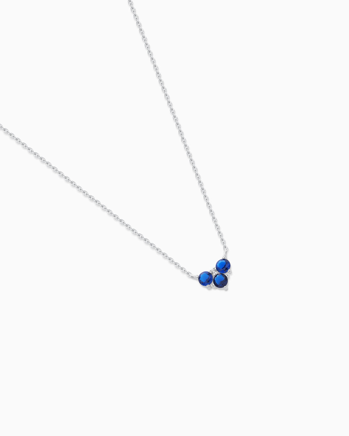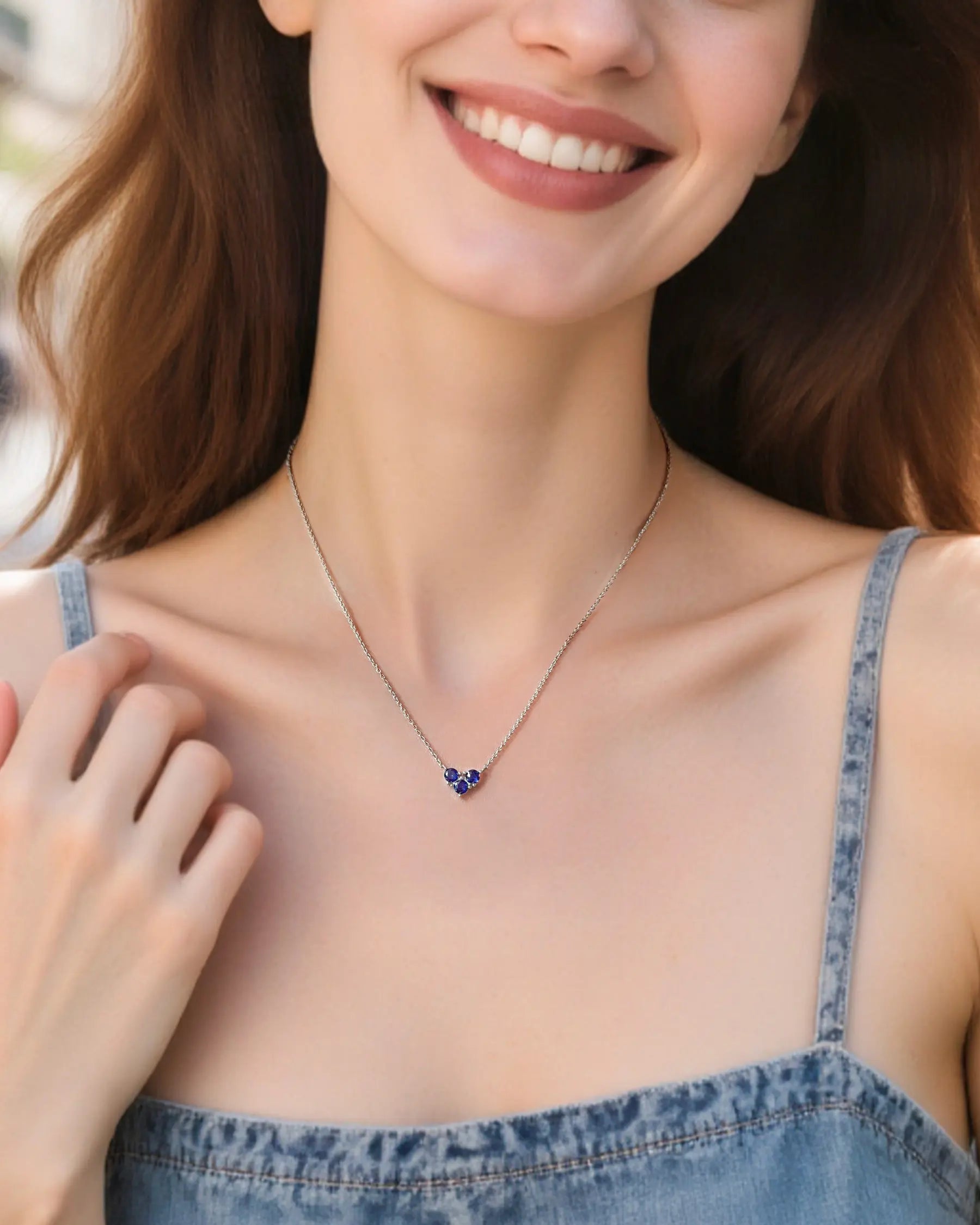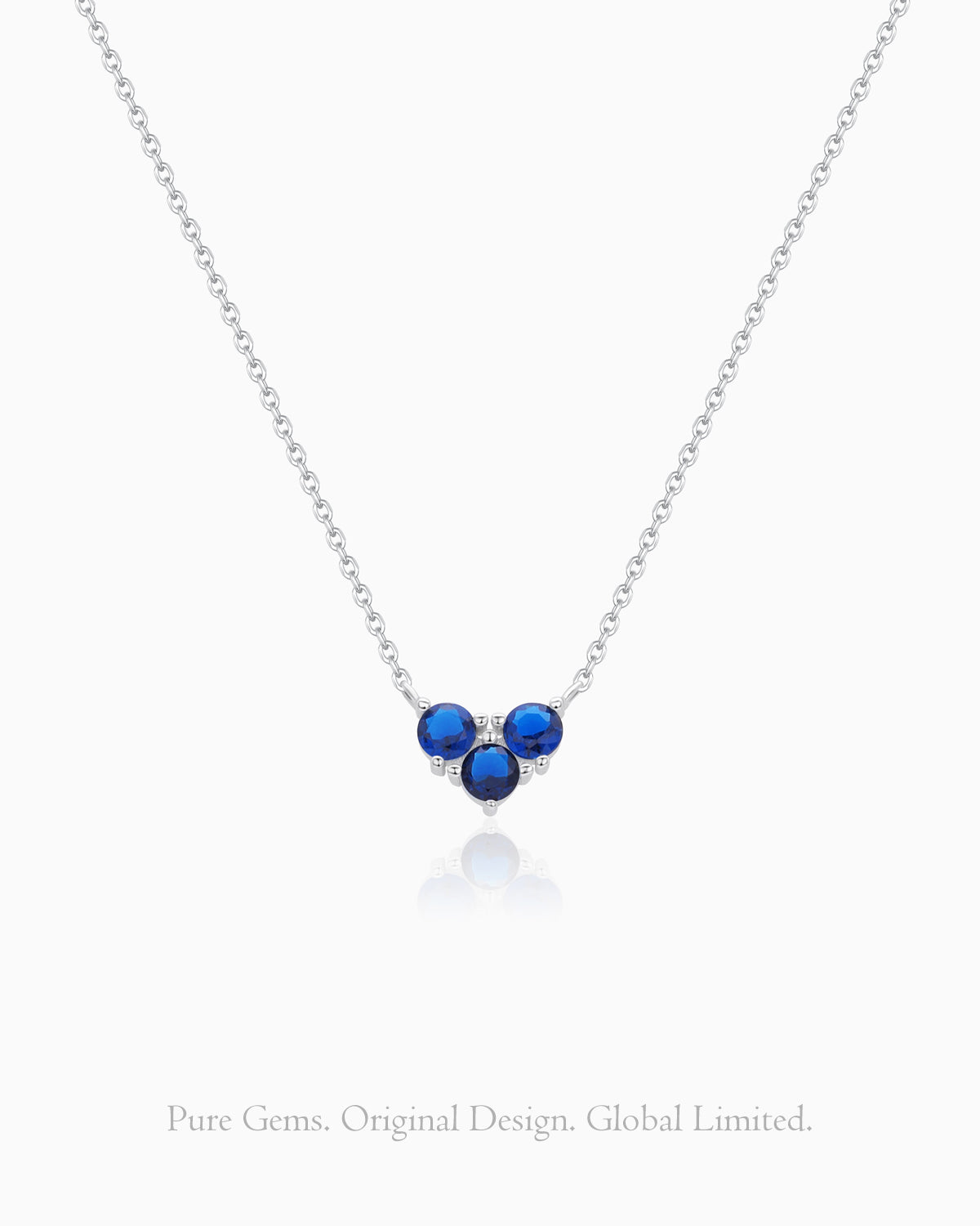 サファイアの穏やかな優雅さからインスピレーションを得たこのスターリングシルバーのネックレスは、バランスと静けさを体現しています。3 つの輝く青い石がミニマリスト モチーフを形成し、人生の変化を通して中心を保ち、平静を保つことをさりげなく思い出させます。