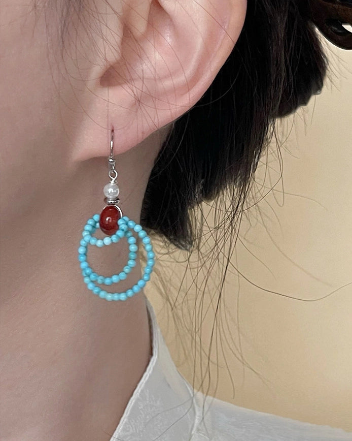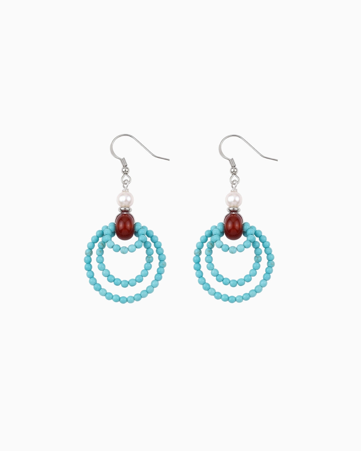ターコイズは精神的な成長と守護の石であり、困難な時期に平穏と力を与えてくれます。このイヤリングは、繊細な白いバラと揺れるターコイズのオーバルが美しく、純粋さと穏やかなバランスを象徴し、自然な優雅さを添えています。