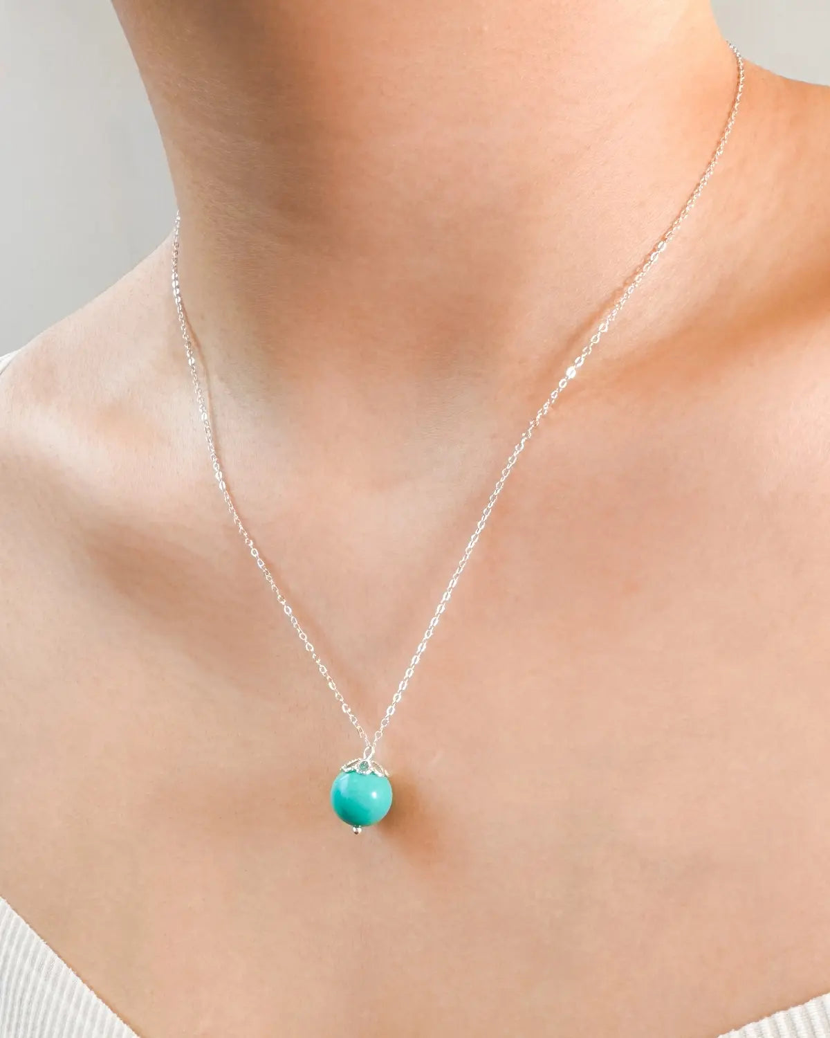 北極の孤氷流にインスピレーションを得た、925スターリングシルバーのネックレス。10mmのターコイズのペンダントが特徴で、平和、守護、そして癒しを象徴しています。12月の誕生石であるターコイズは、穏やかさ、喜び、そして地に足の着く力を与えてくれるため、毎日身に着ける大切な宝物です。