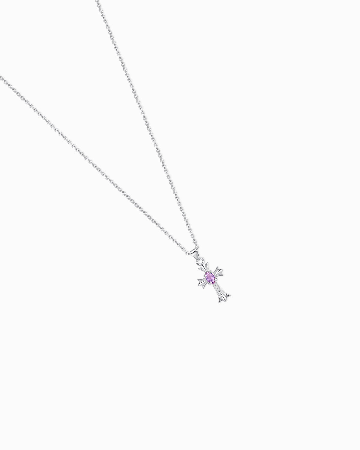 This pendant necklace features a sterling silver cross adorned with natural amethyst, symbolizing clarity and devotion. Its elegant design blends spiritual significance with timeless style, making it perfect for everyday wear or meaningful gifting. A subtle reminder to carry calm and focus wherever you go.