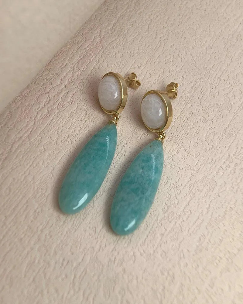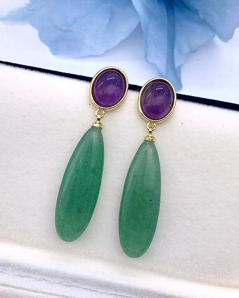 These elegant drop earrings feature a teardrop silhouette adorned with multicolored birthstones—each one representing a unique emotional power.