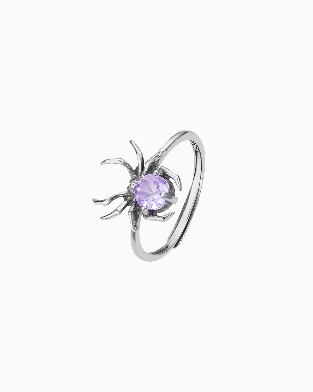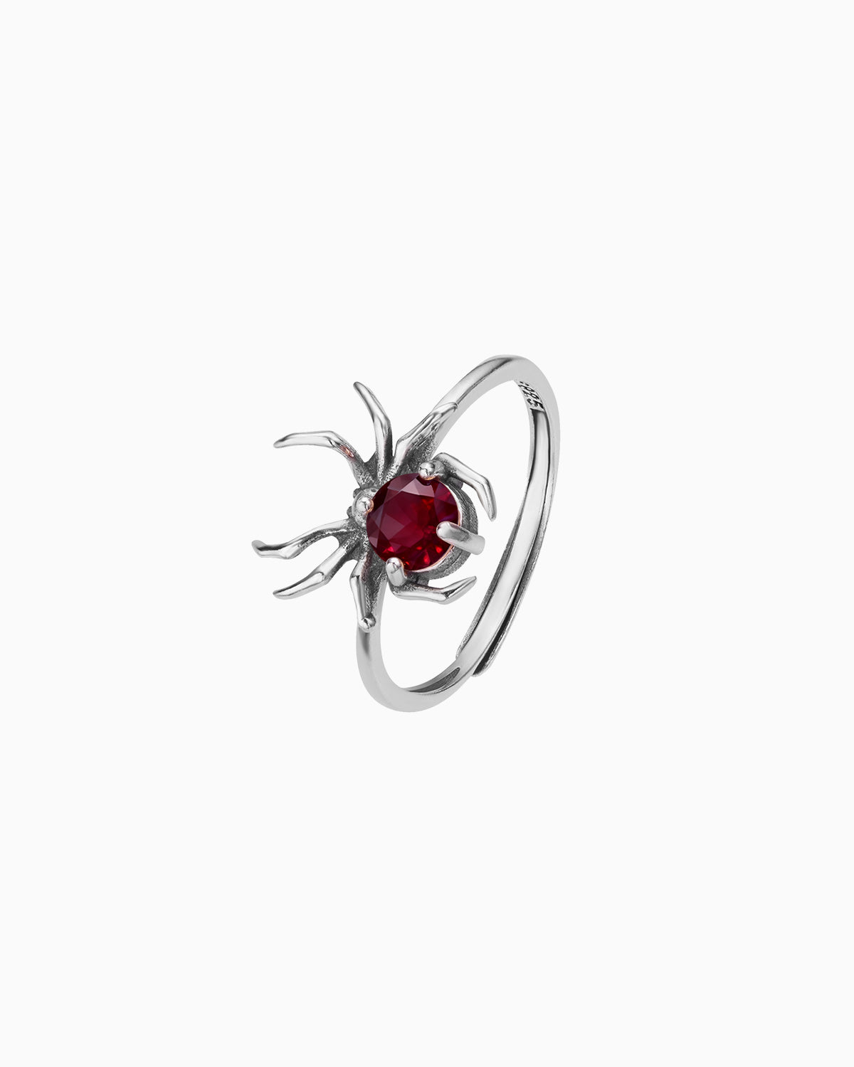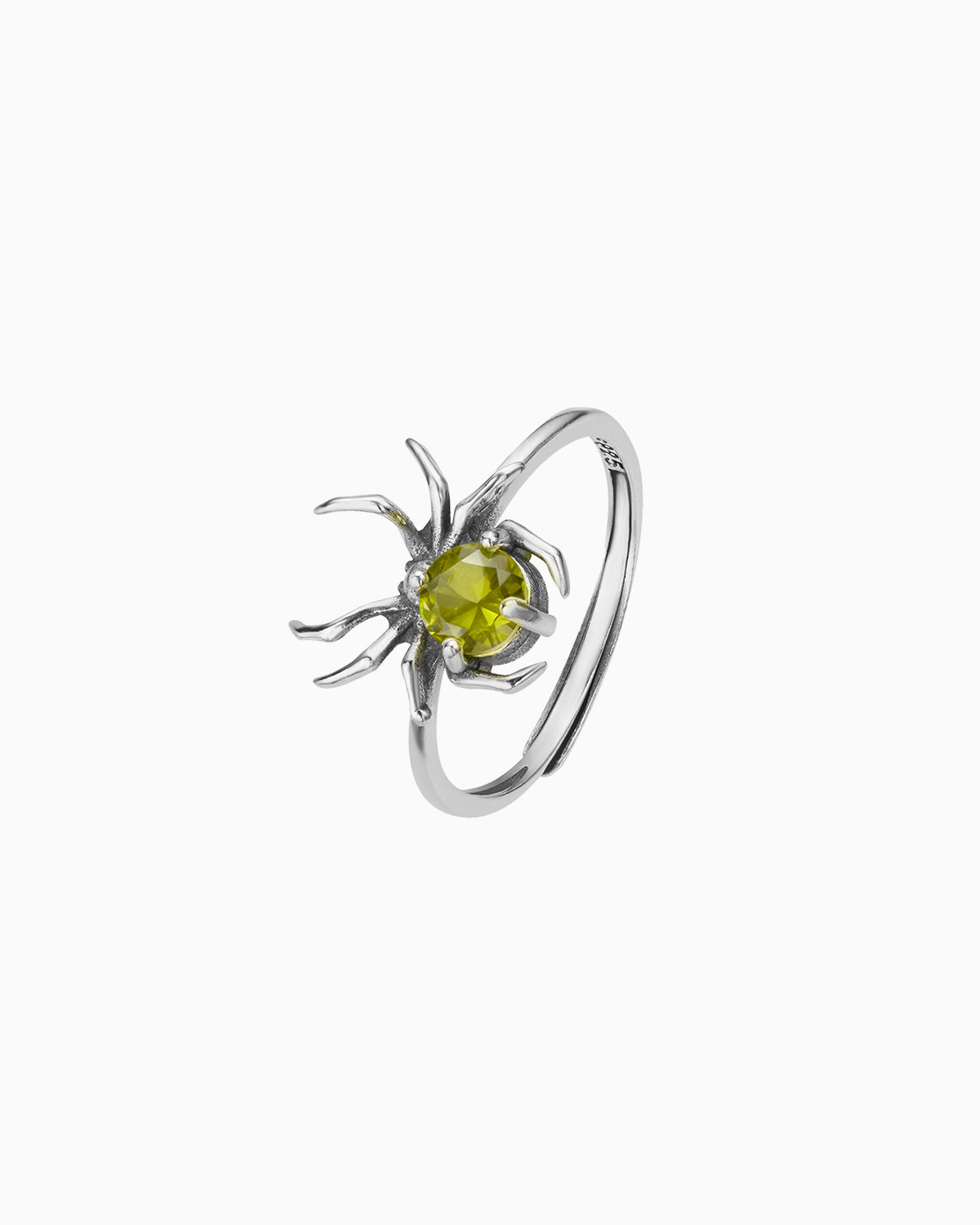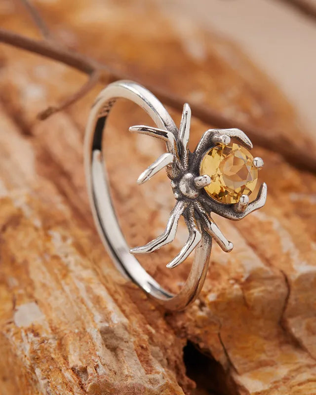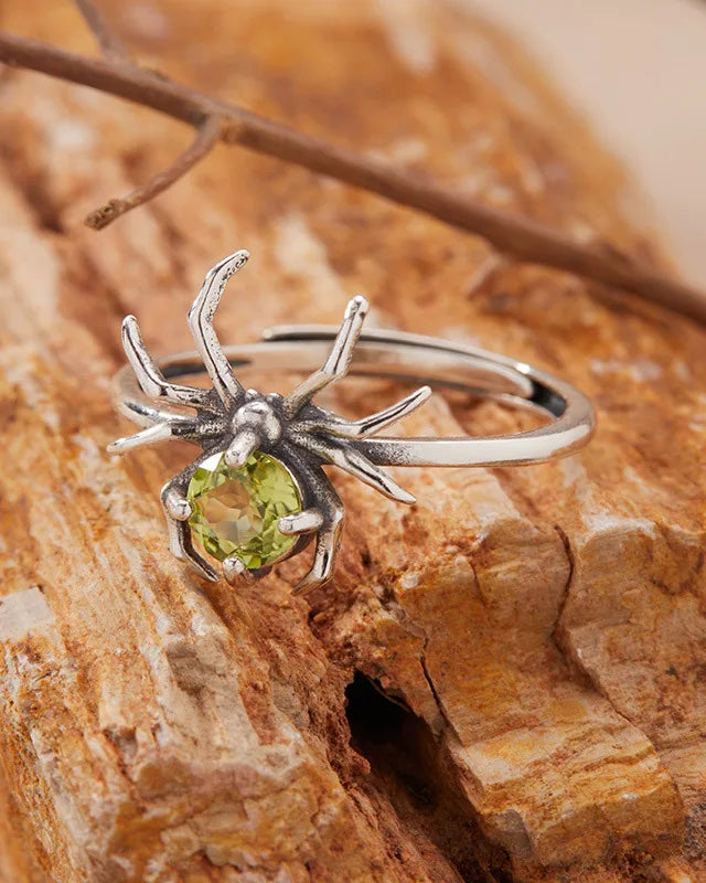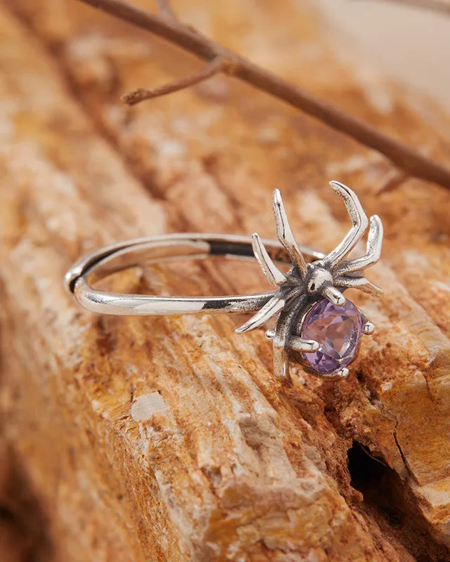 Inspired by the intricate artistry of a spider, this open ring showcases a delicate spider motif centered with a luminous gemstone, embodying nature’s elegance and quiet strength.