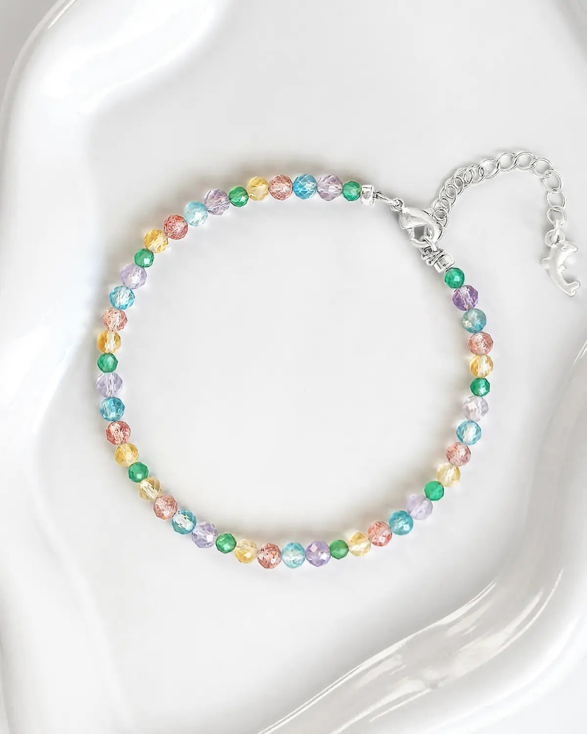 This faceted rainbow bracelet adds instant happiness. Perfect for casual wear or gifting to friends.