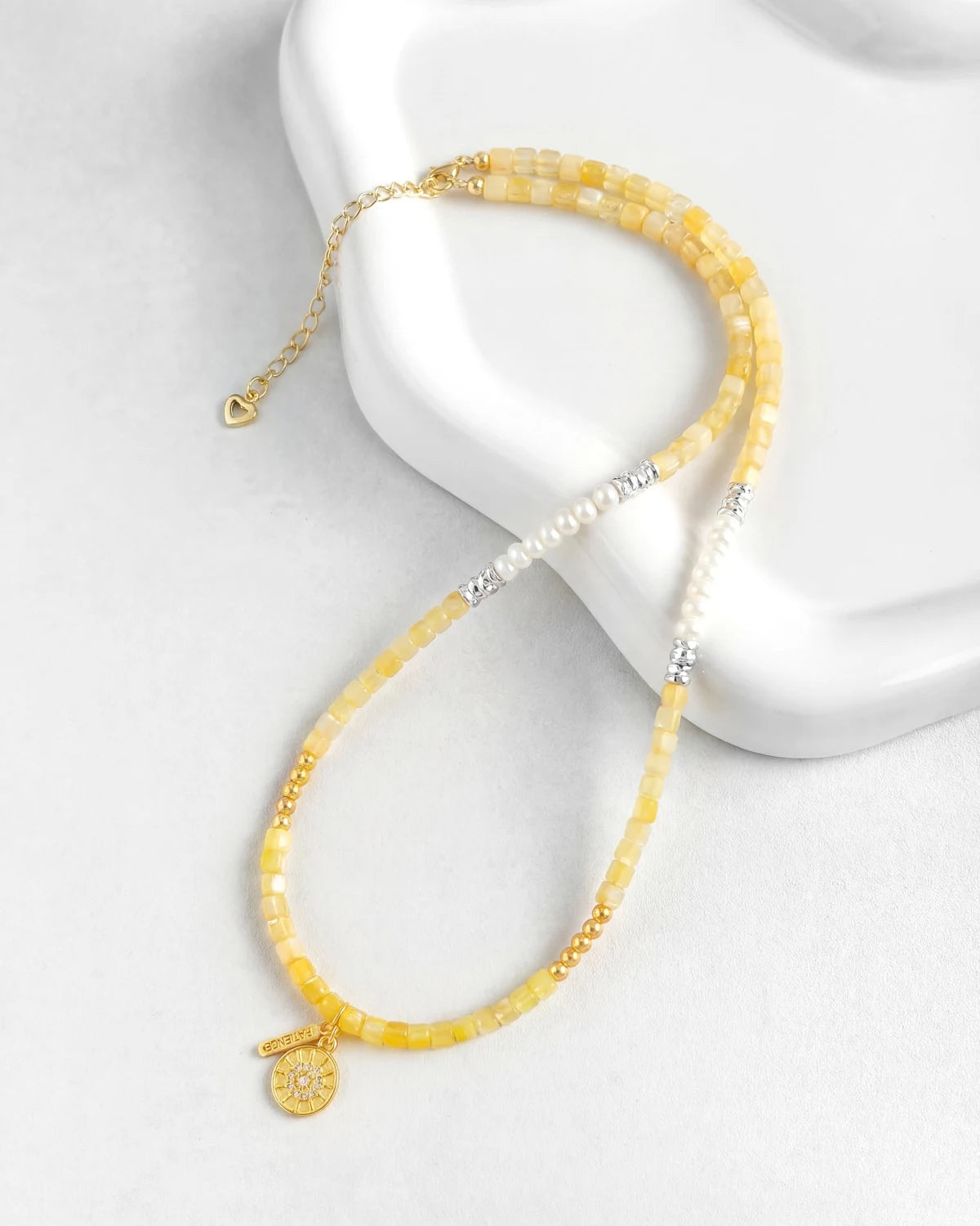 Strung with radiant 4mm cube citrine beads and baroque pearls, this necklace is a tribute to light, abundance, and self-growth.