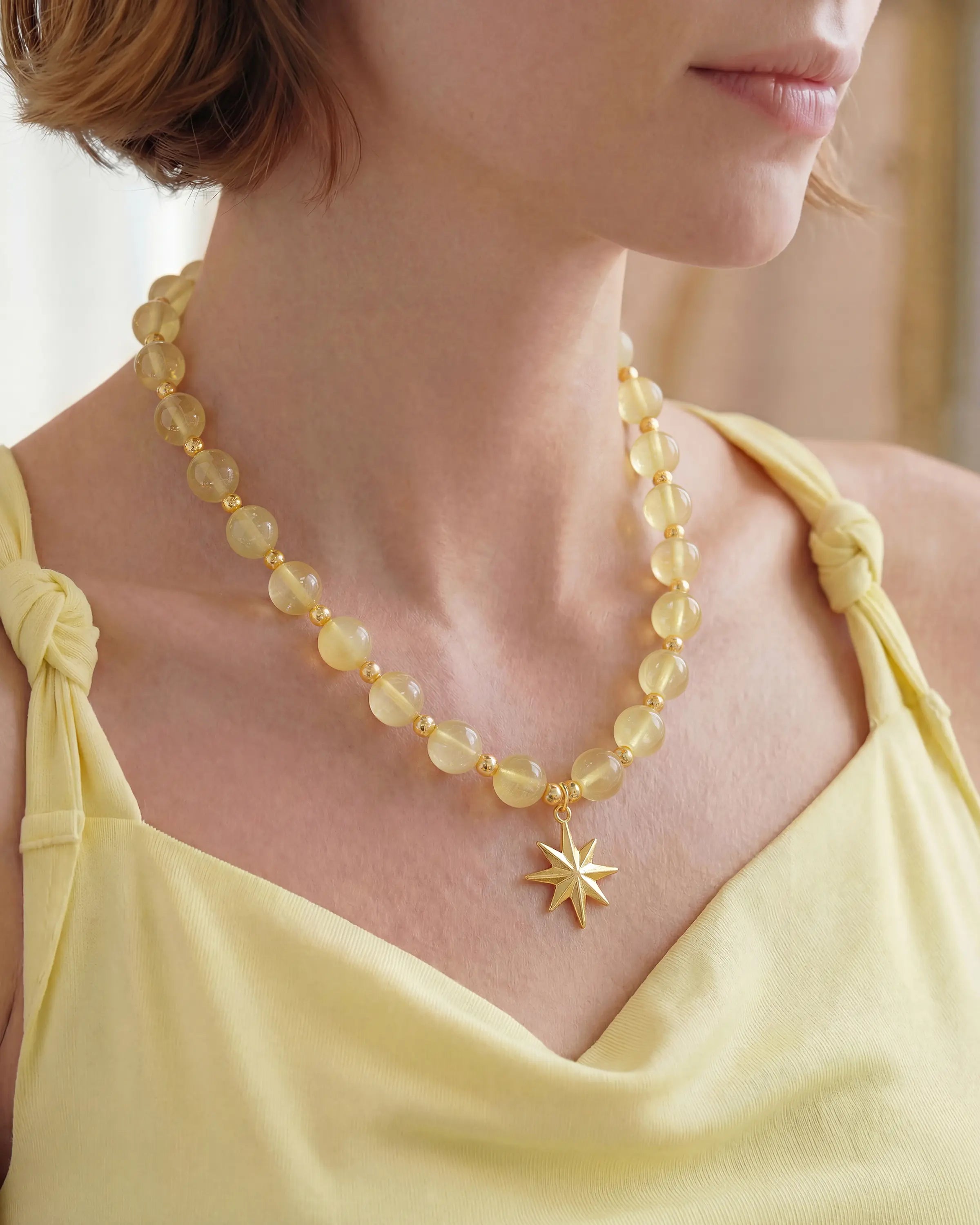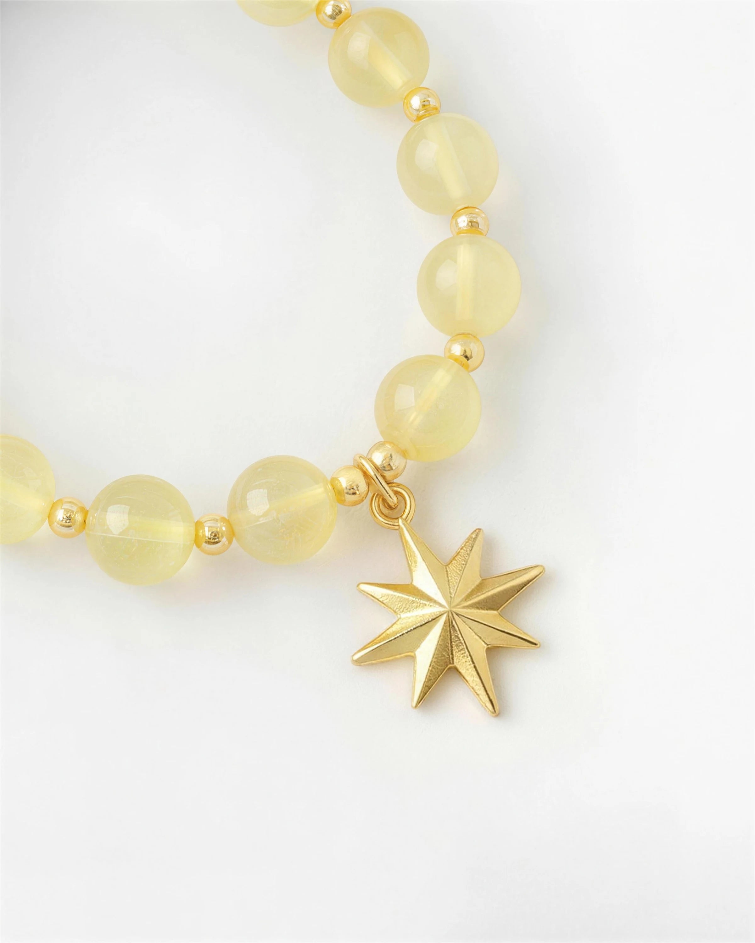 Everyday sunshine. These 10mm citrine beads offer a premium feel and a bright, clear color, paired with gold spacer beads that catch the light beautifully. Centered with a classic gold star, it perfectly balances bold stones with delicate details. It's a wearable reminder to stay positive all day.