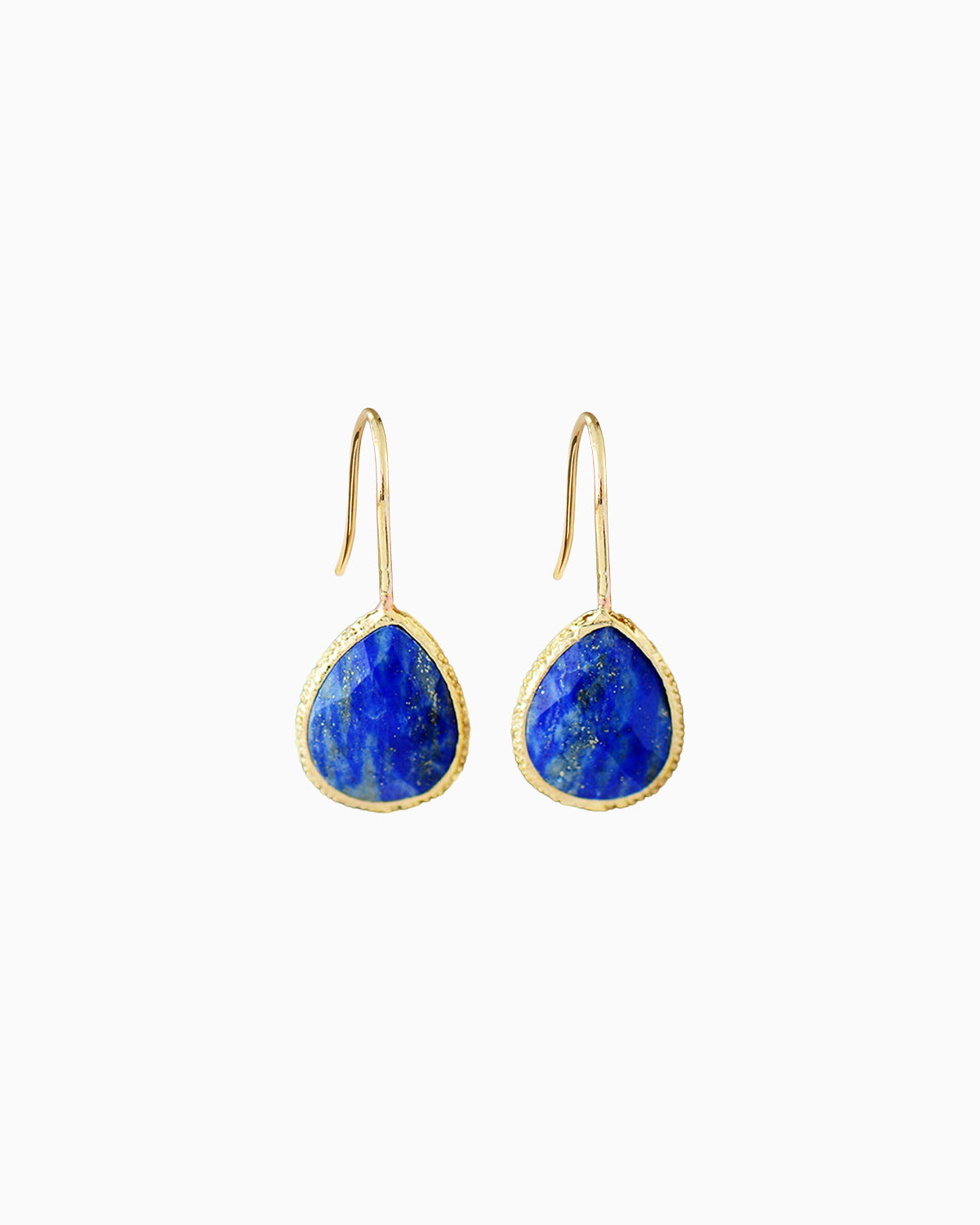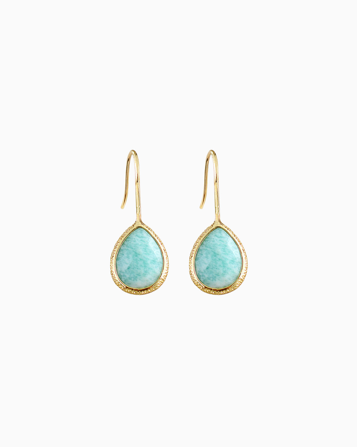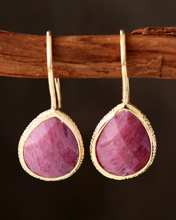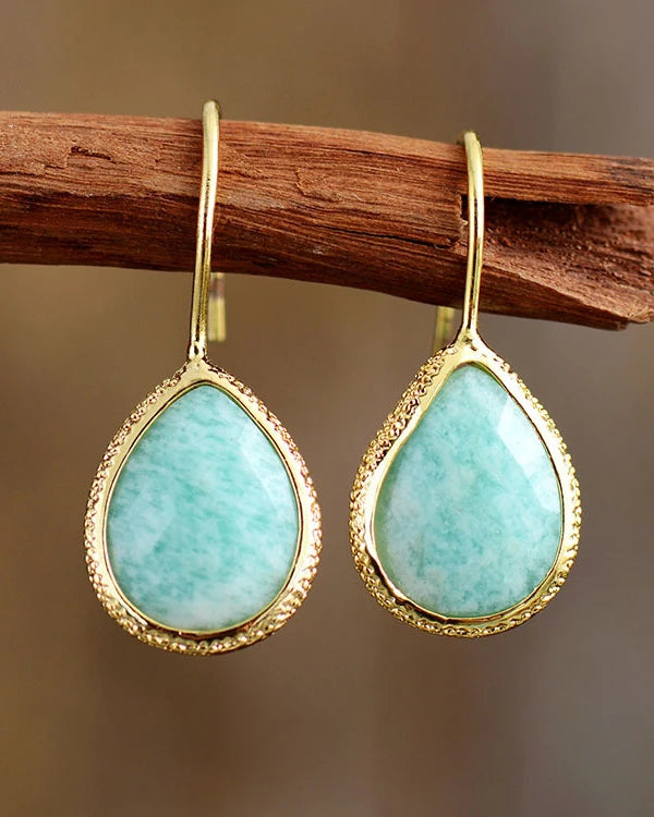 These elegant drop earrings present a trio of natural oval gemstones—deep blue lapis lazuli, tranquil amazonite, and rosy rhodonite—each rich with its own meaning. Smooth, graceful curves frame the vibrant hues, creating a harmonious blend of color and texture.