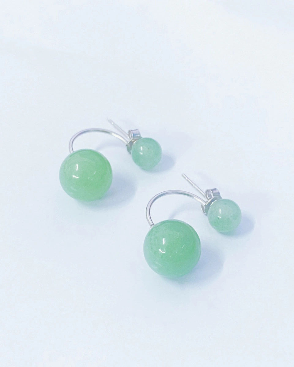 These refined stud earrings feature two natural gemstone beads in contrasting sizes, creating a modern, balanced silhouette. The delicate pairing highlights the stones’ unique hues and textures, adding a touch of everyday elegance and personal meaning.