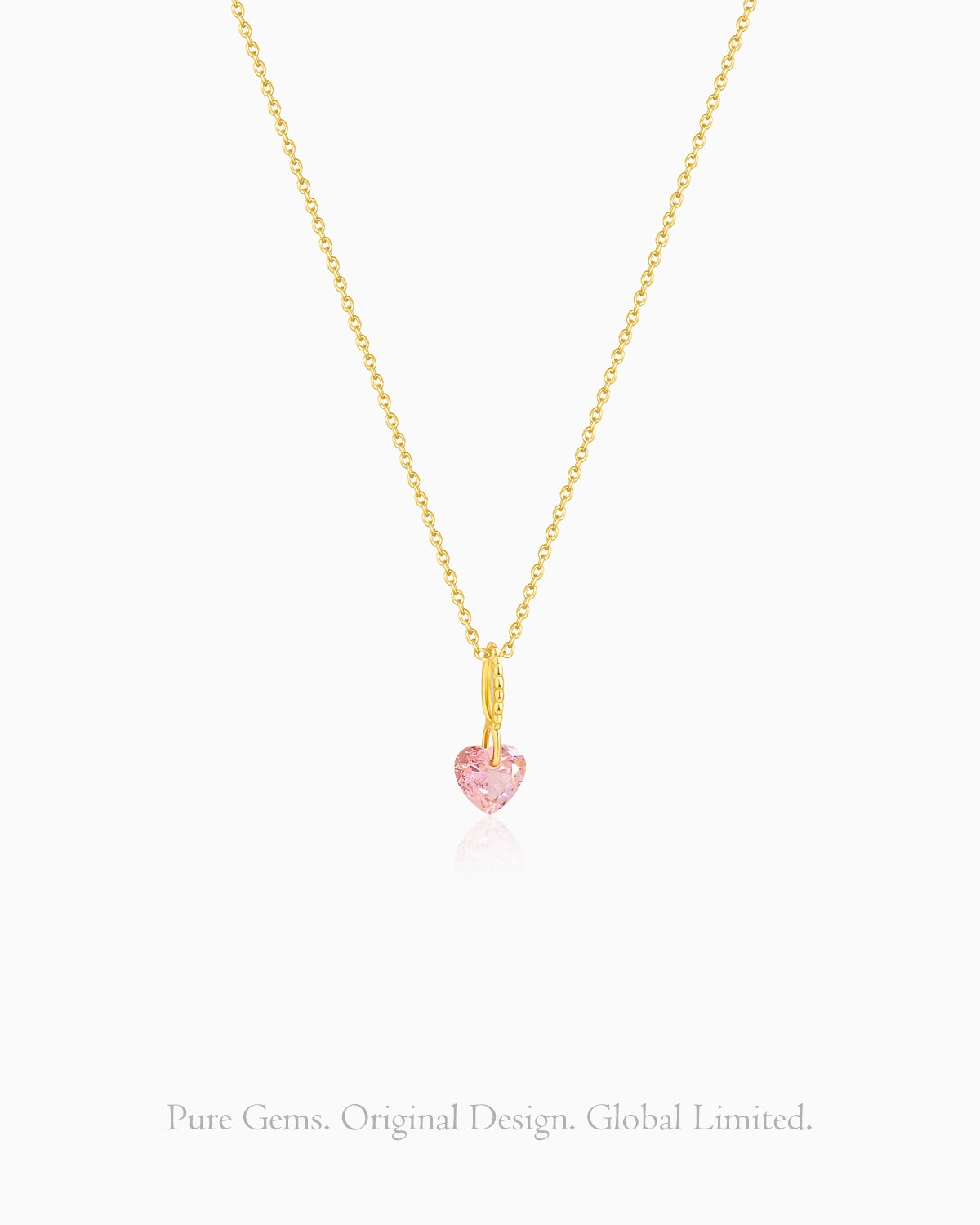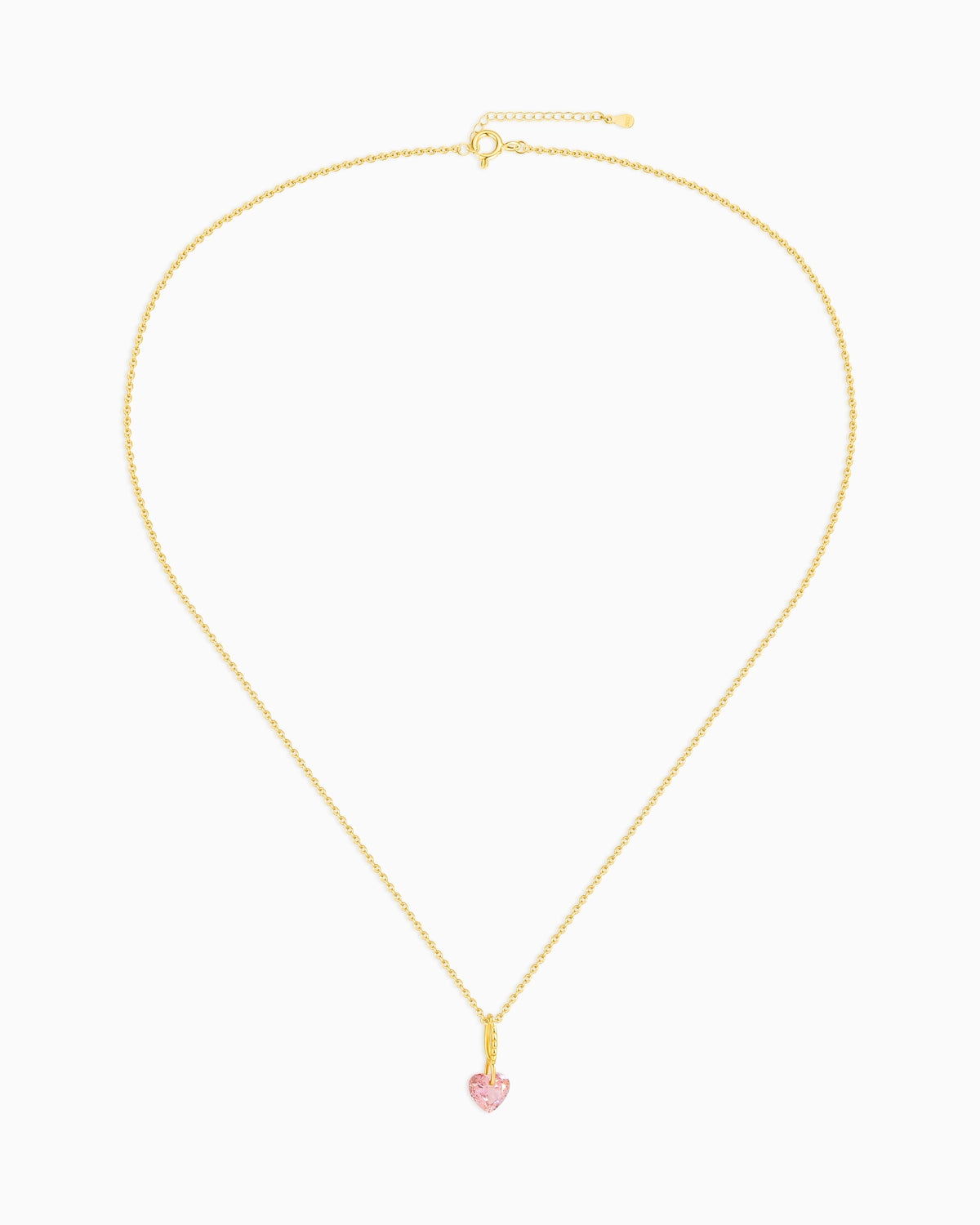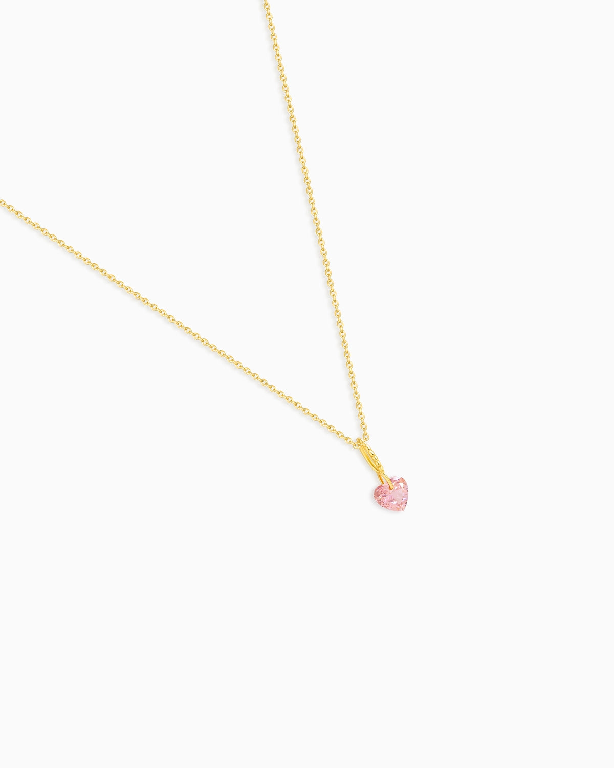 Delicate and full of warmth, this heart-shaped necklace in 14K gold-plated sterling silver shines with a soft pink zircon centerpiece.