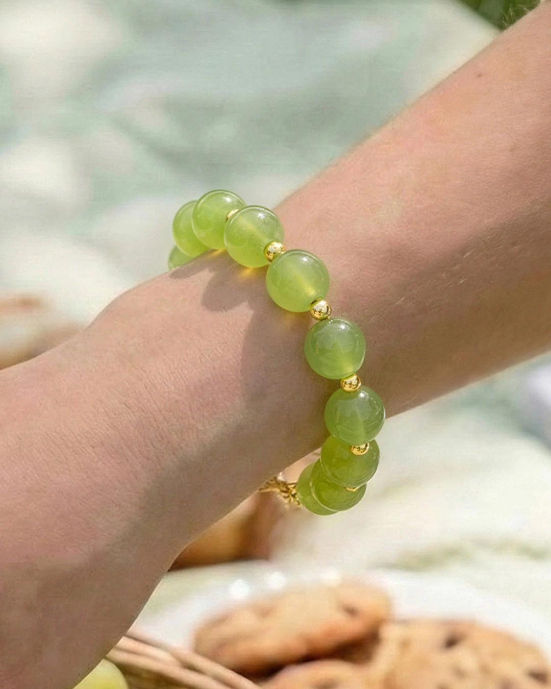 The Luminous Nature collection combines the steady feel of 10mm gemstones with delicate gold details. In a soft, pale Mint, this piece brings a natural sense of Freshness, Breeze, and Tranquility.