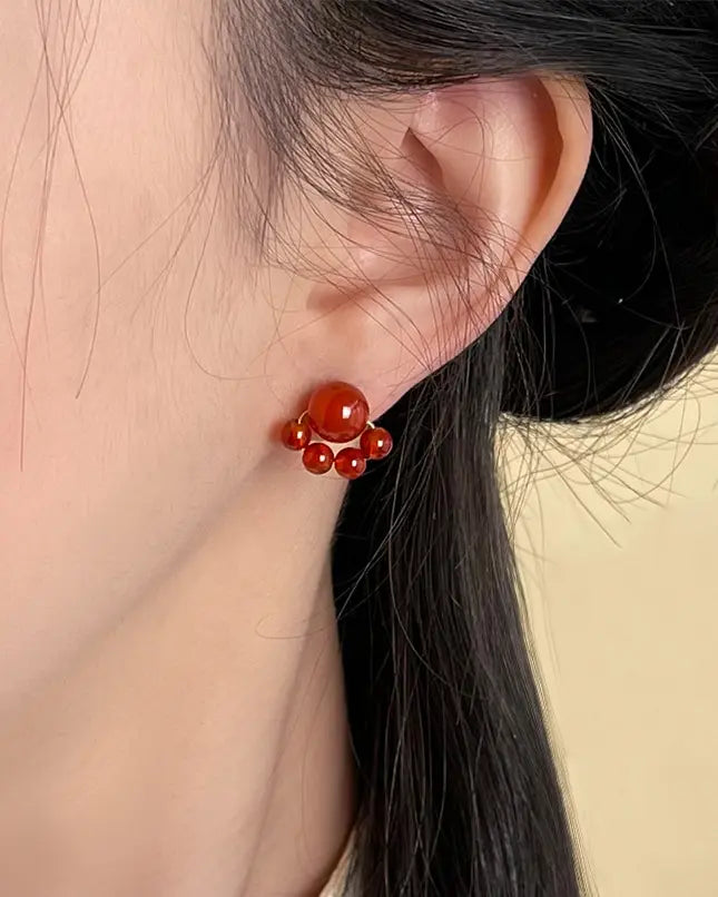 Inspired by bold, sculptural elegance, these Red Agate Claw Earrings feature four polished crimson beads forming a distinctive claw-like silhouette that radiates both power and poise.