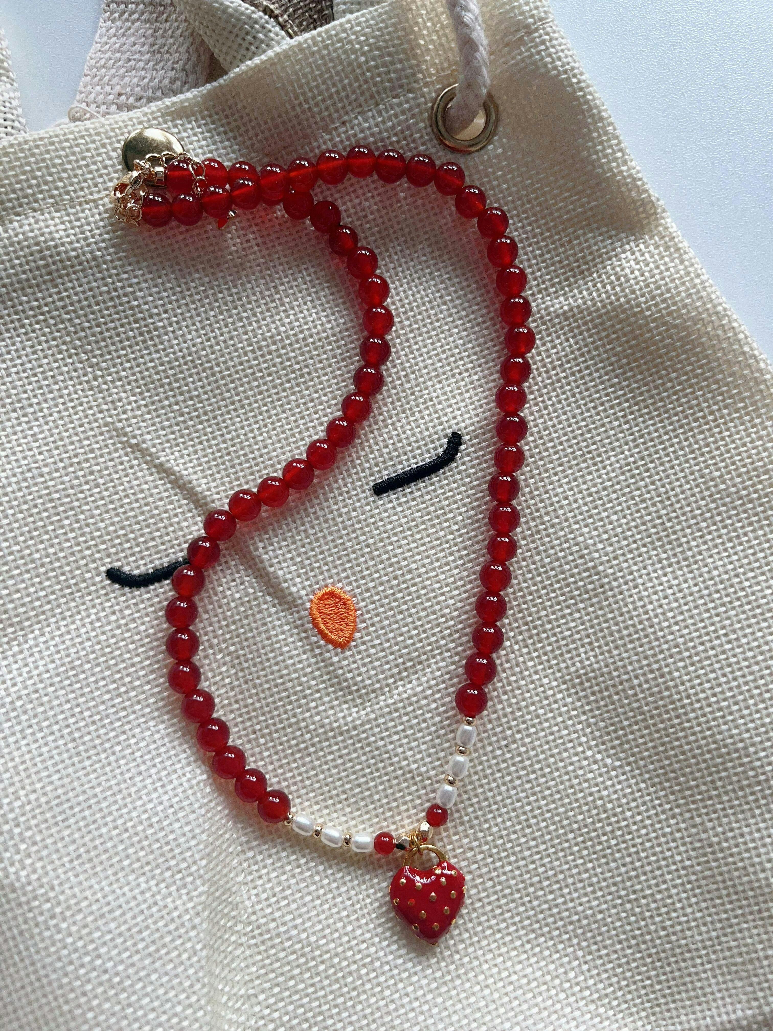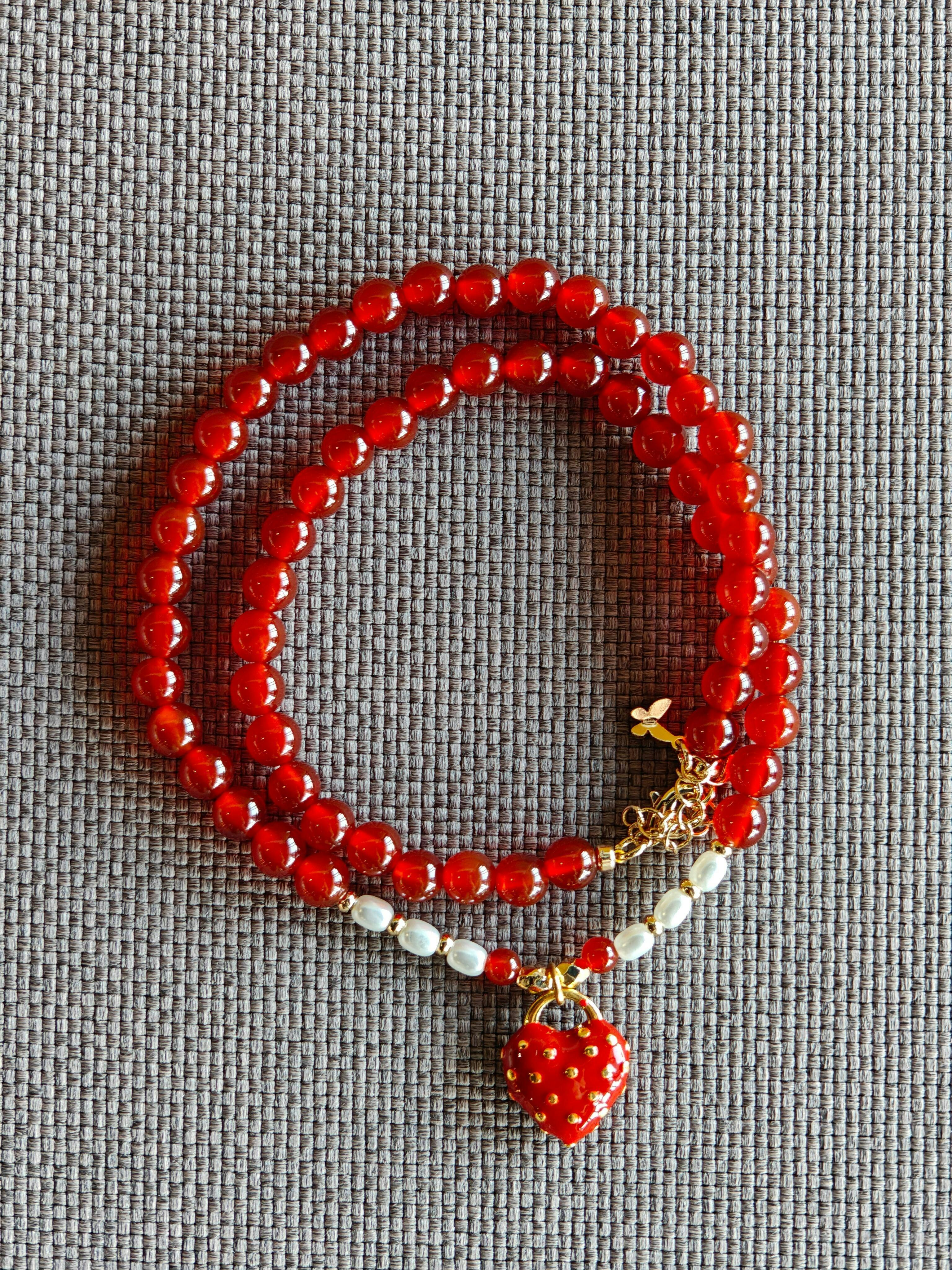 Inspired by the timeless symbol of love, this Red Agate beaded necklace celebrates courage and feminine strength.