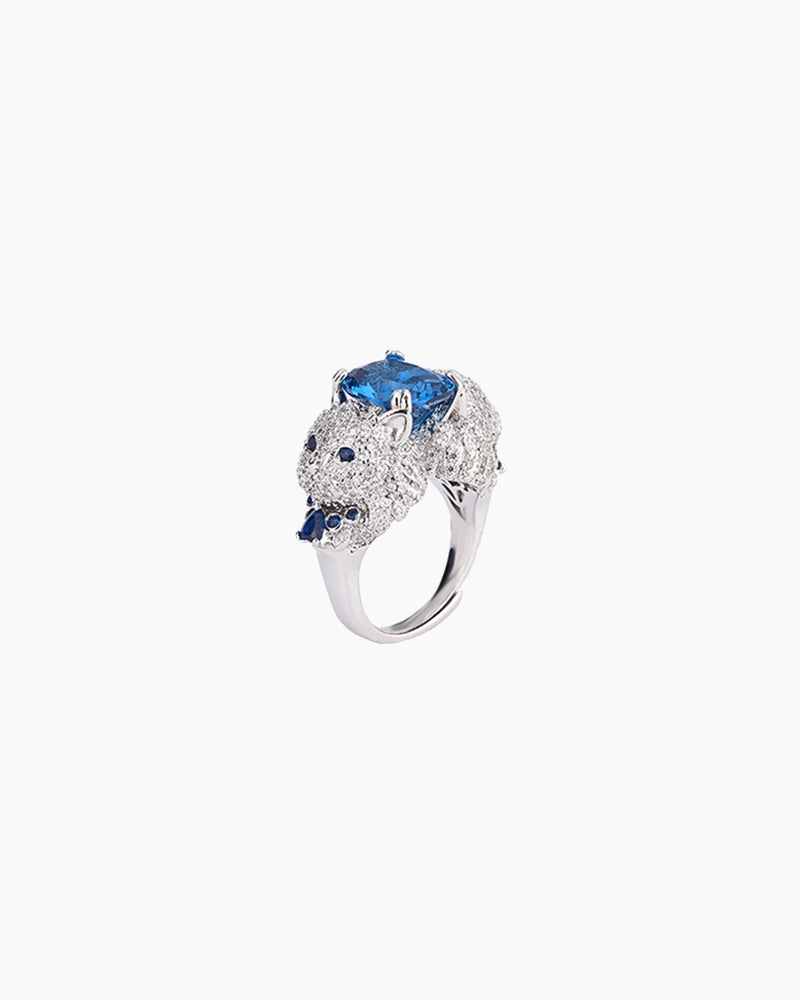 Sapphire is the stone of wisdom and intuition, offering quiet strength and clarity. Framed by two graceful cat silhouettes, this adjustable ring is a charming reminder to trust your instincts and embrace your inner knowing.