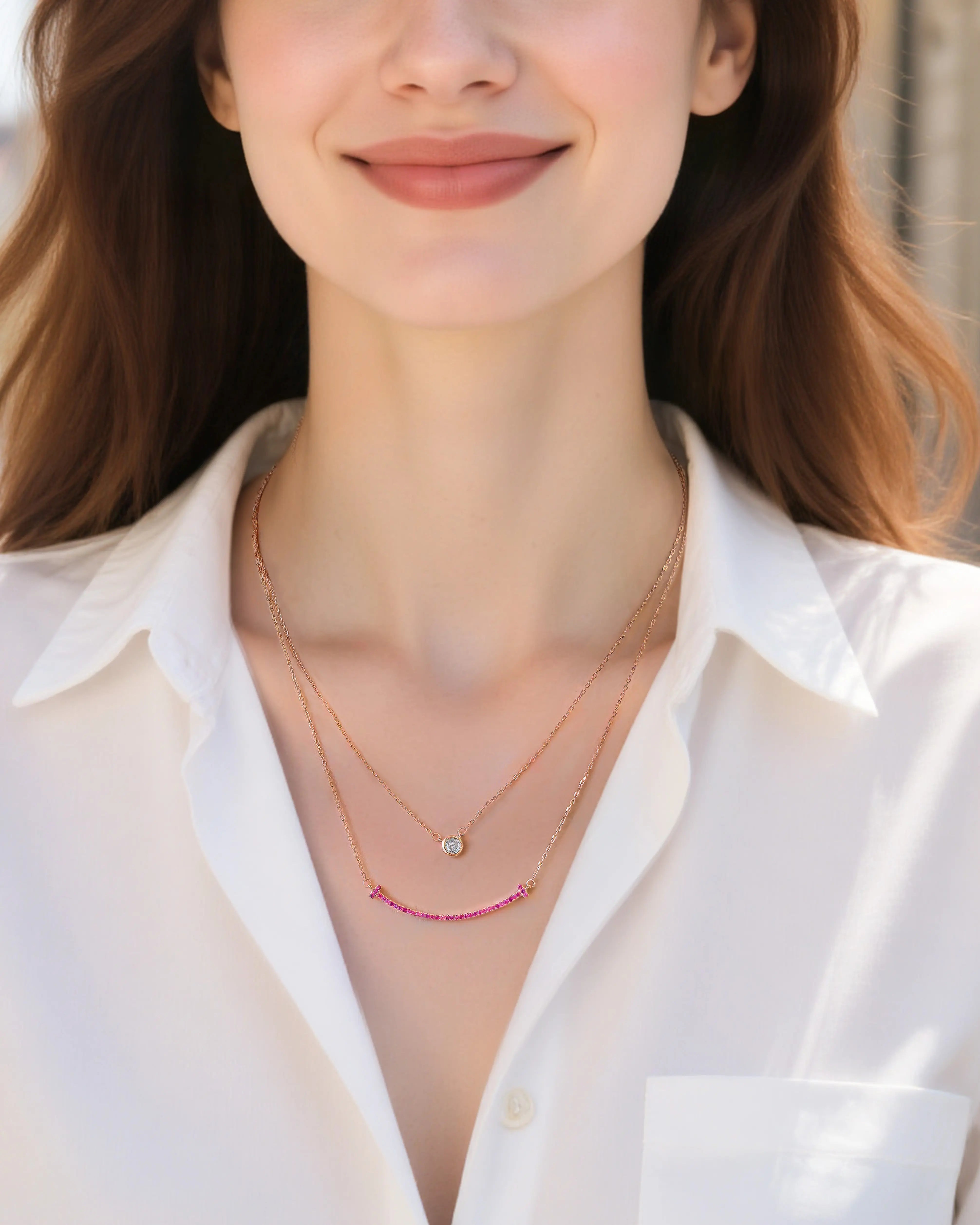 The lower arc mimics a subtle smile, paired with a small, delicate pendant above, adding charm and dimension.