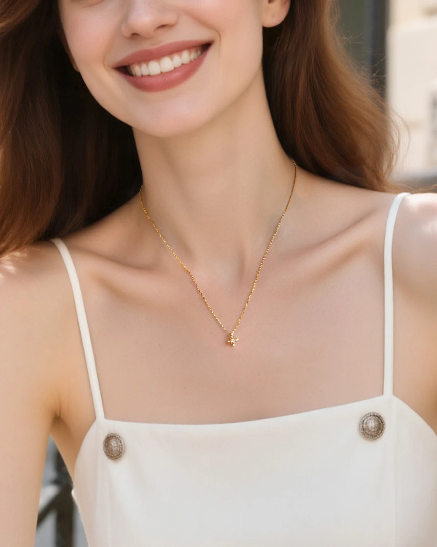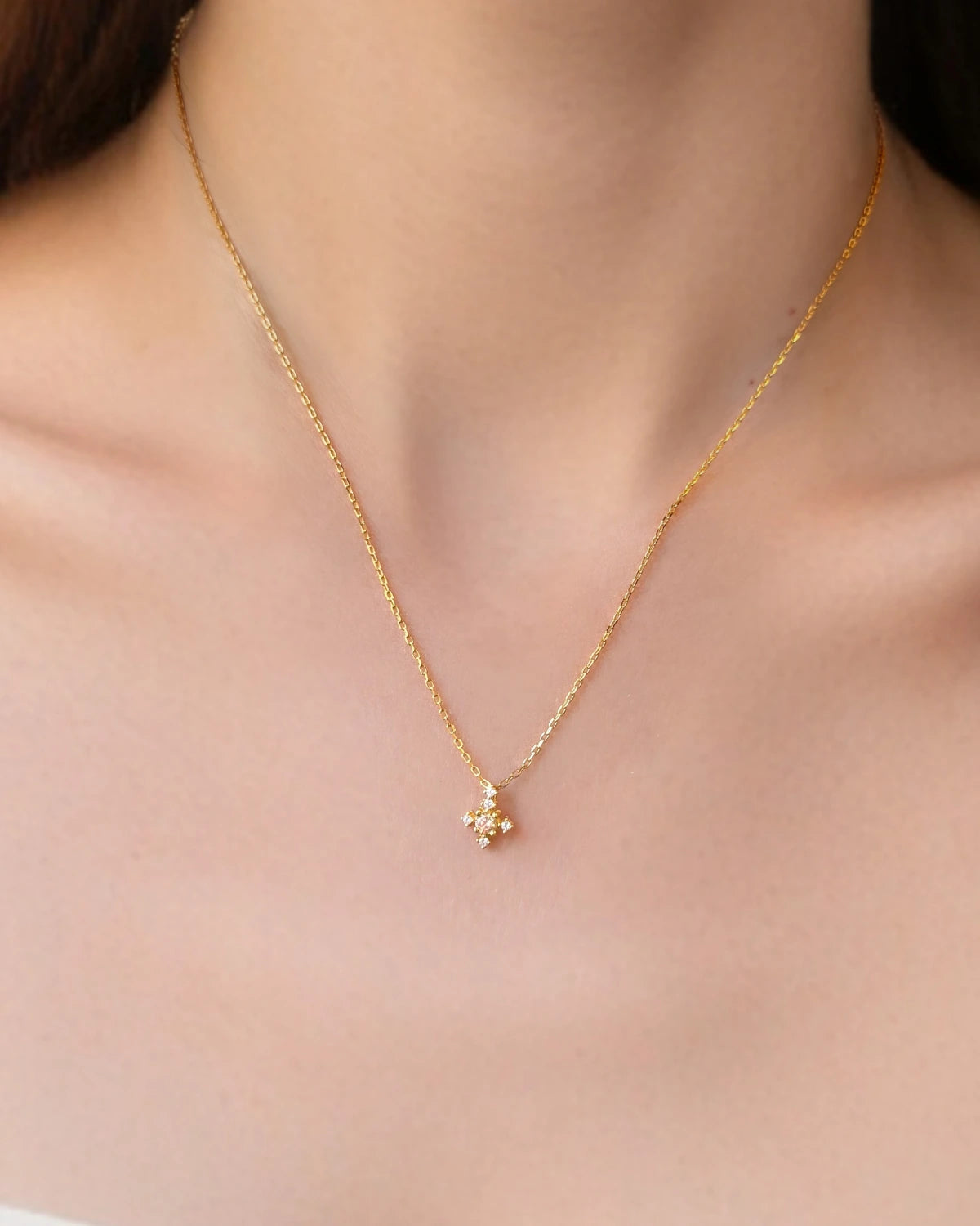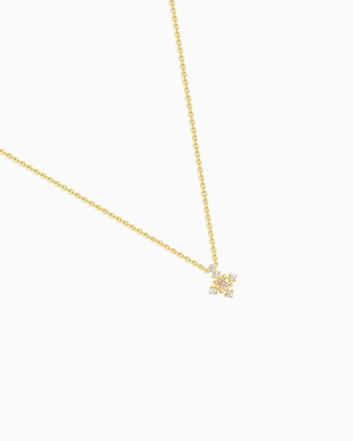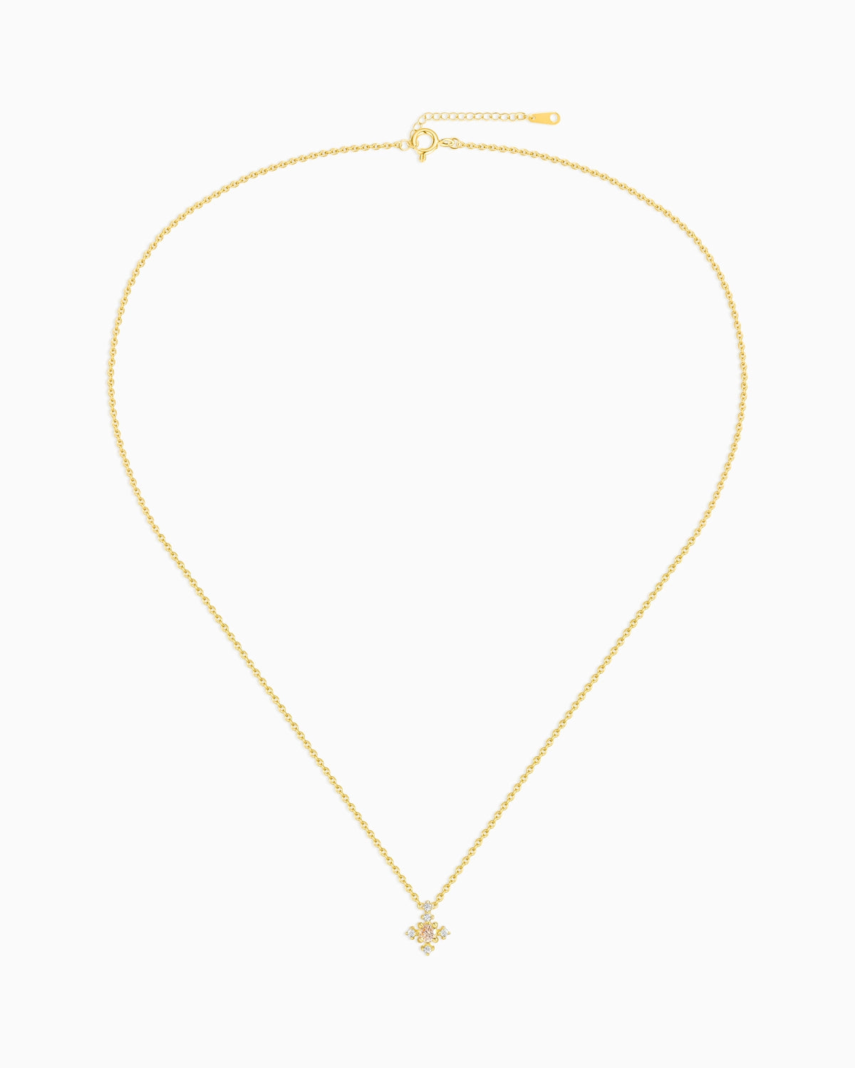 Delicate as a winter’s first snow, this 14K gold plated sterling silver necklace captures the quiet beauty of the season.