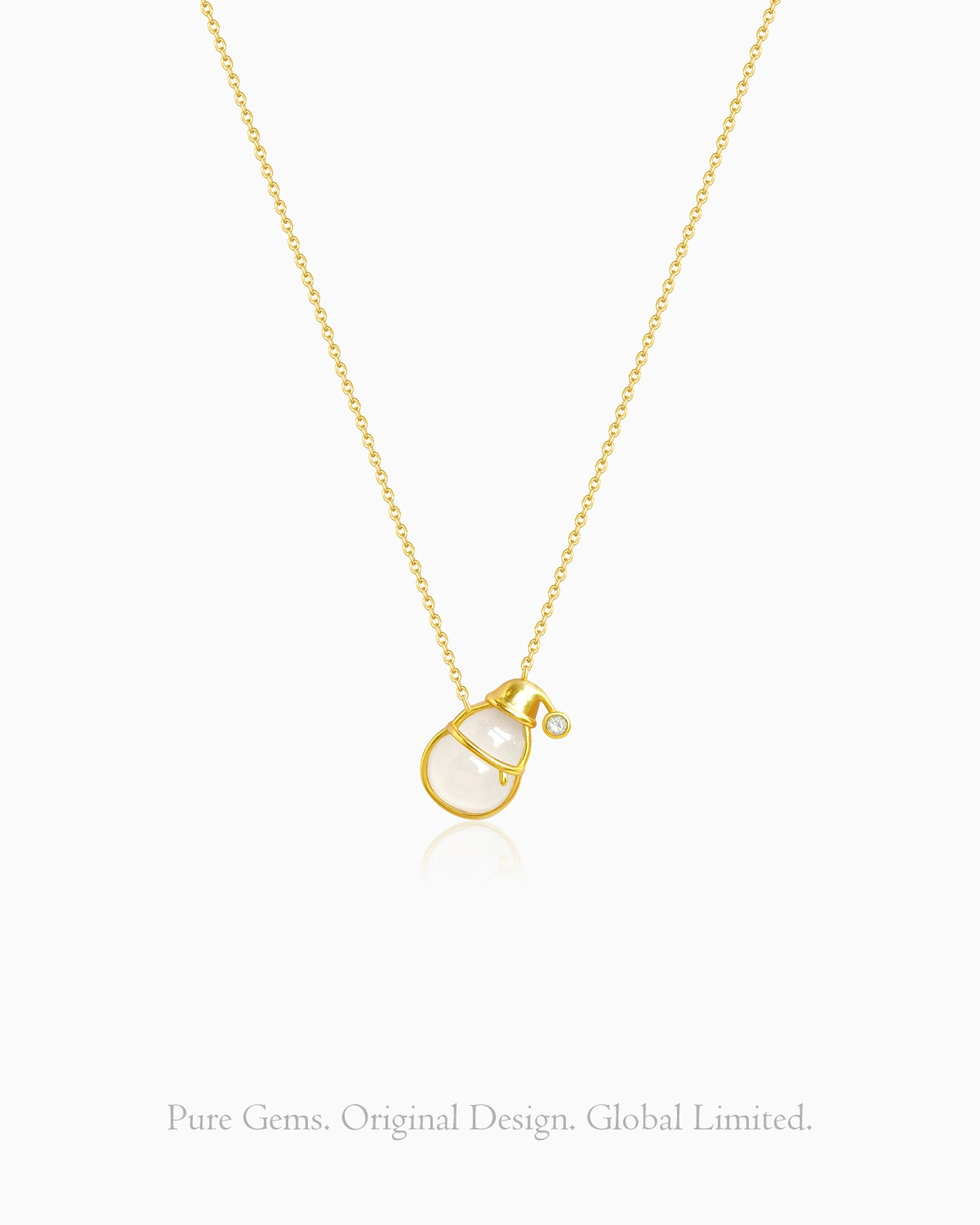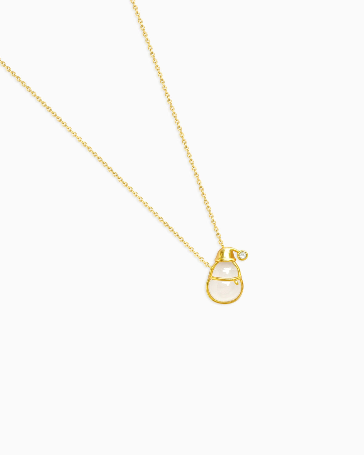 This charming piece features a snowman pendant delicately crafted in 14K gold-plated sterling silver, accented with sparkling white zircon stones that shimmer like freshly fallen snow.