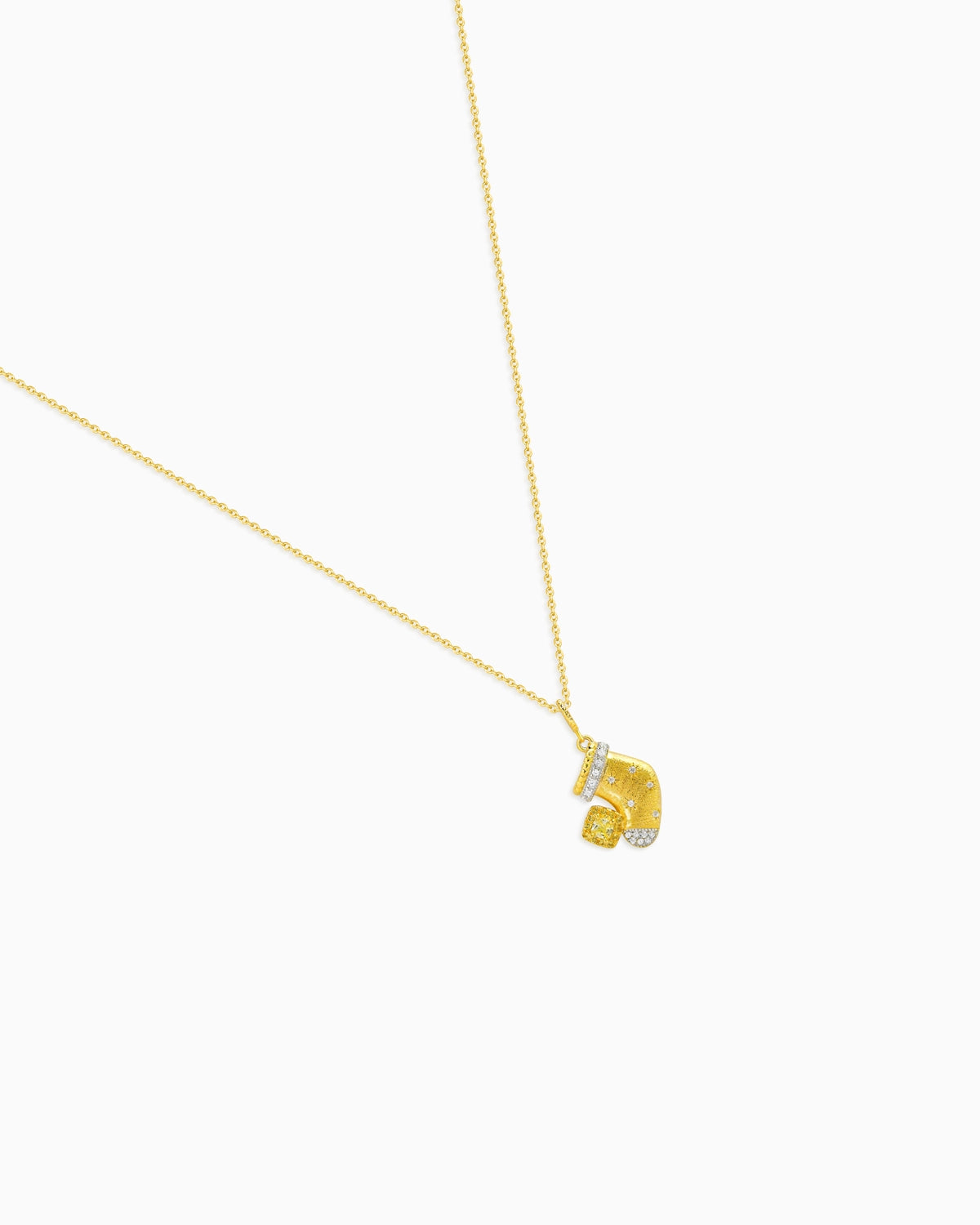 Celebrate the season with this charming stocking necklace in 14K gold-plated sterling silver, accented with a cheerful yellow zircon. A playful and festive piece, perfect for adding sparkle to your holiday outfit or gifting to loved ones.