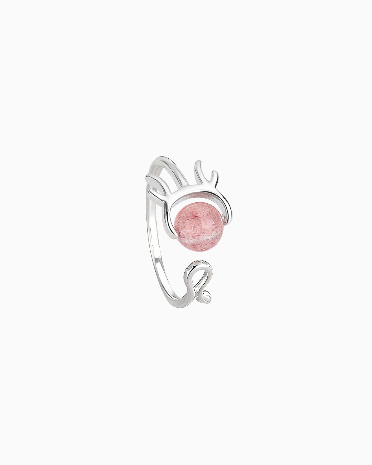 Strawberry Quartz, the stone of compassion and emotional harmony, sits at the heart of this open ring.