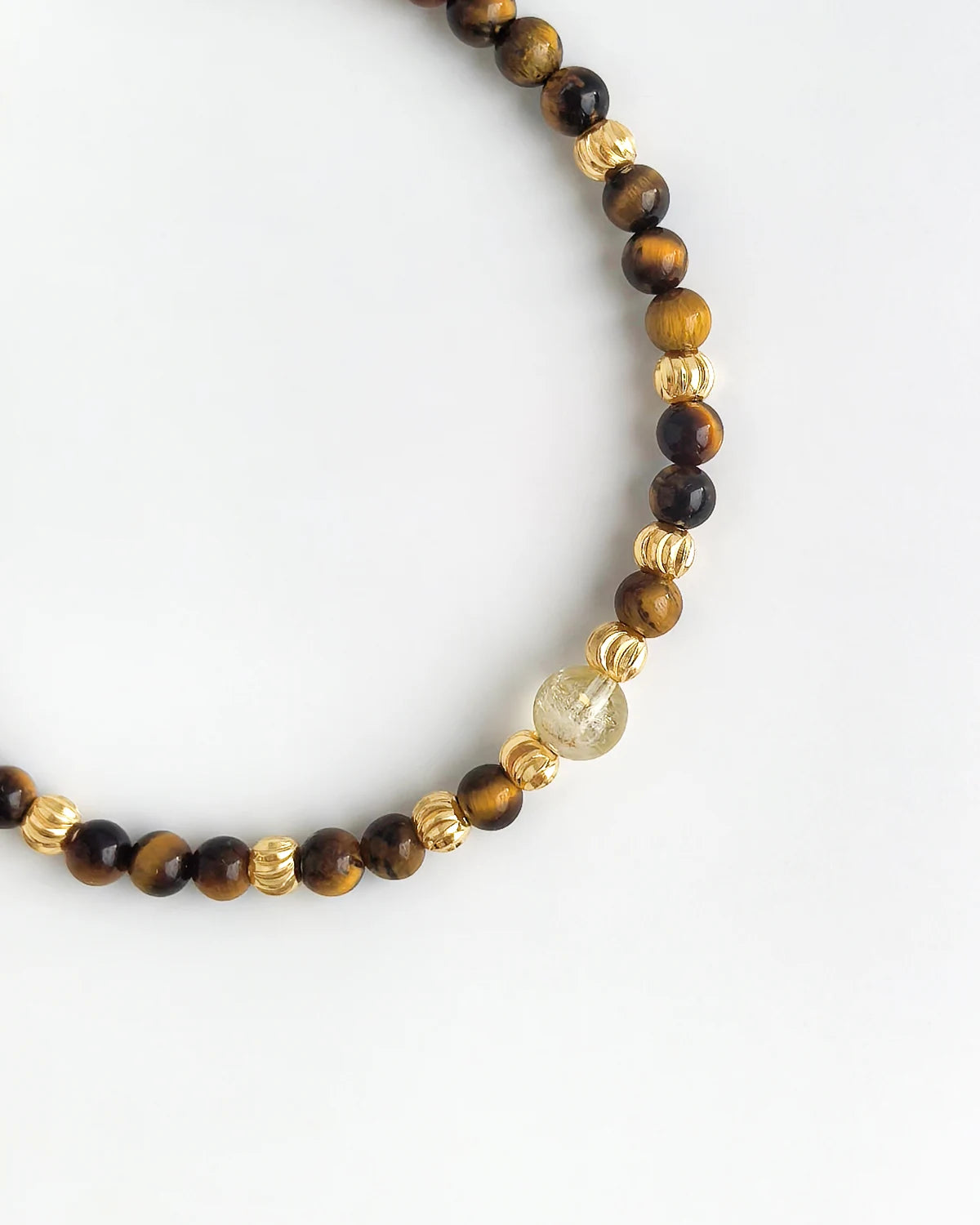 Inspired by natural resilience, this handcrafted bracelet strings 4mm Tiger’s Eye beads with a 6mm Citrine accent, complemented by 14k gold-plated round grooved spacers. Designed to empower your energy and bring balance, confidence, and courage to every moment.