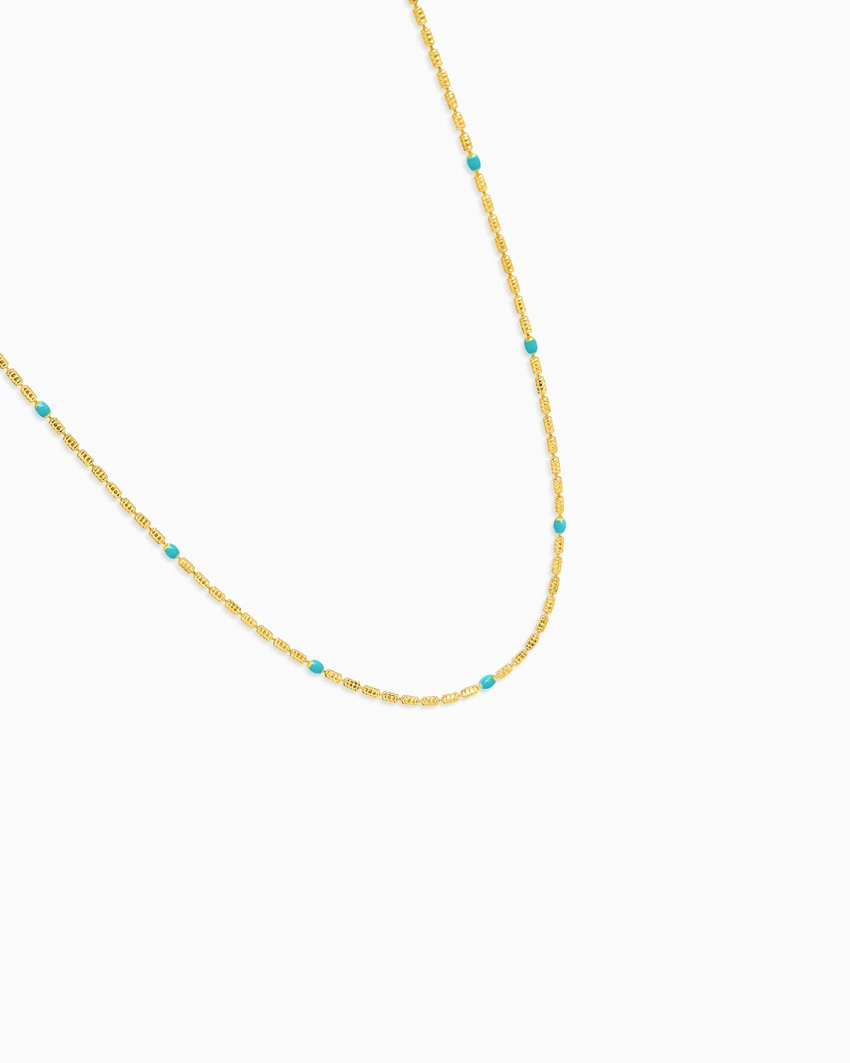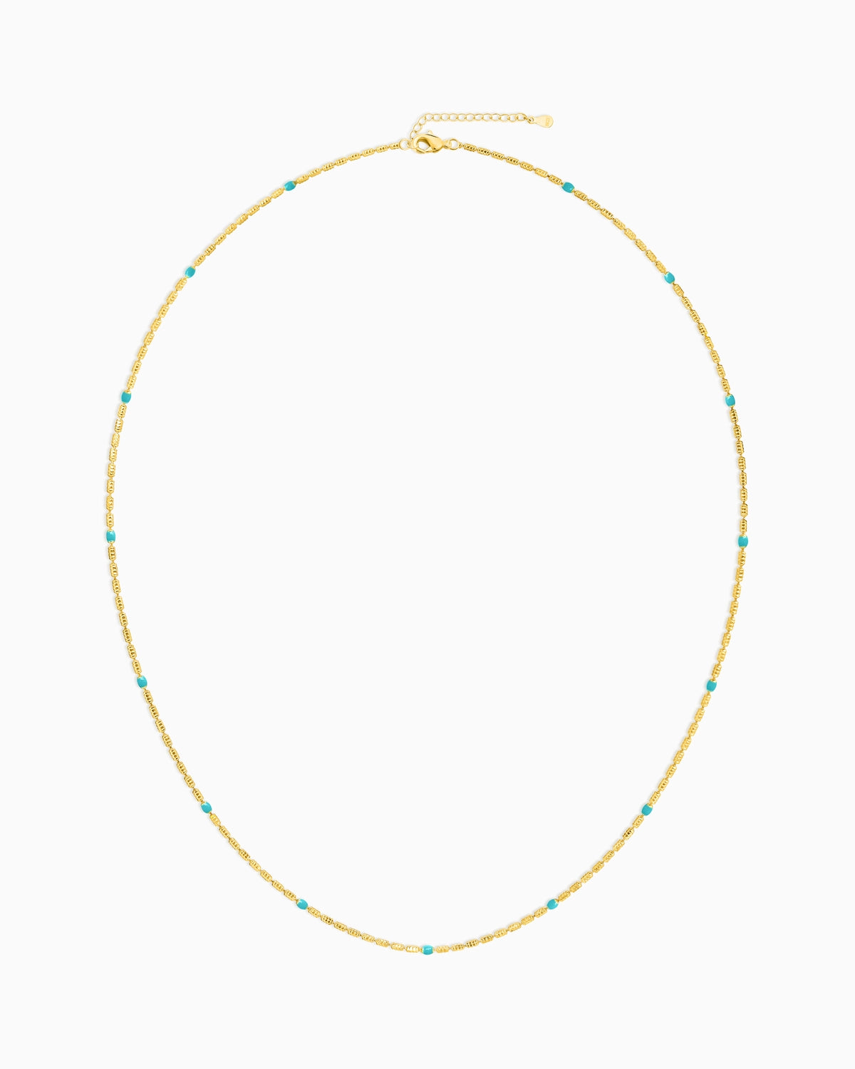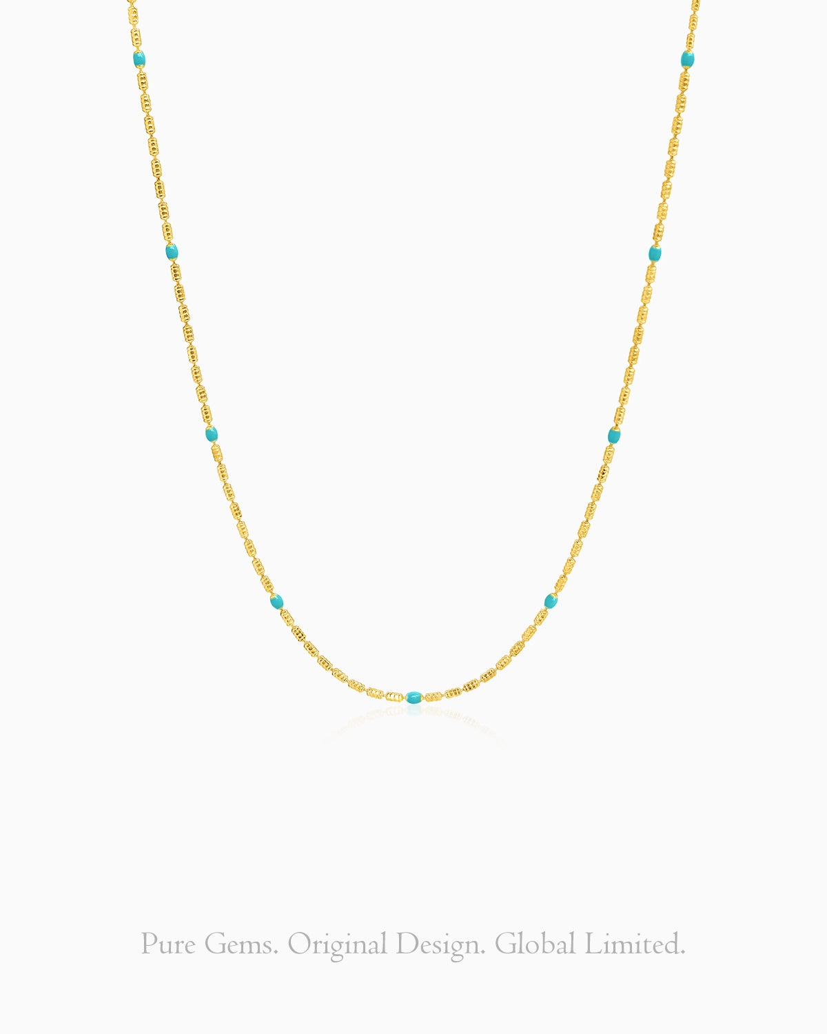 A sleek gold-plated chain subtly accented with turquoise beads, offering a touch of calm and balance to your everyday style. Minimalist yet meaningful, perfect for layering or wearing solo.