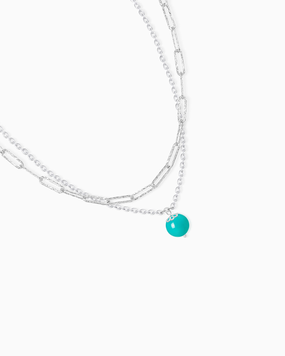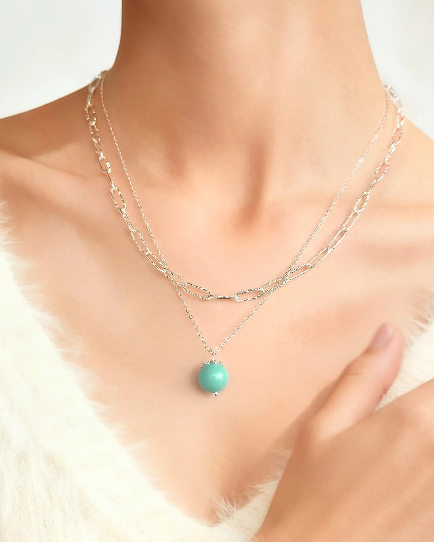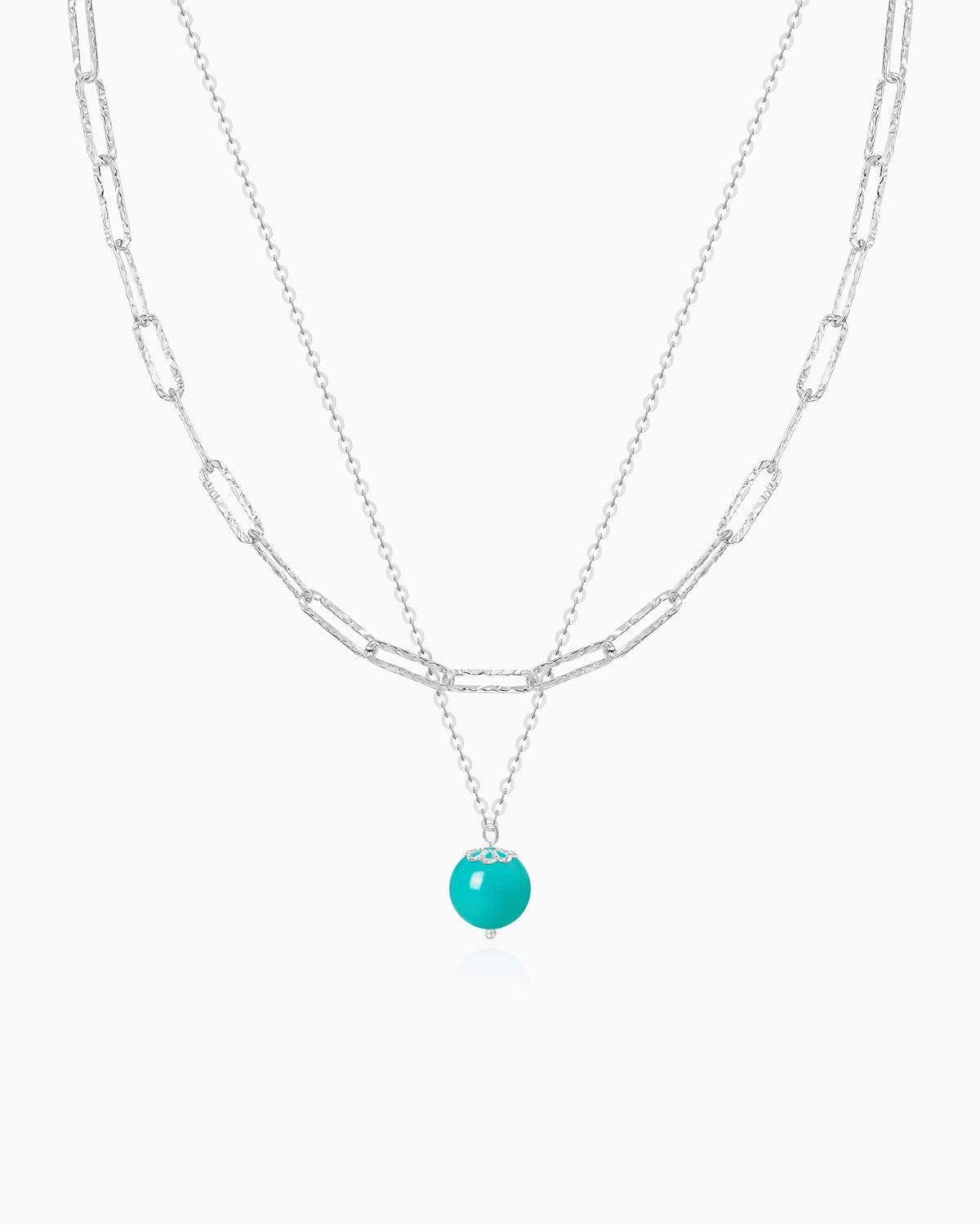 This set pairs a serene turquoise pendant necklace with a sleek paperclip silver chain. The turquoise symbolizes calm and protection, while the chain adds modern balance. Handcrafted from sterling silver, the duo brings both healing energy and versatile elegance to your daily style.